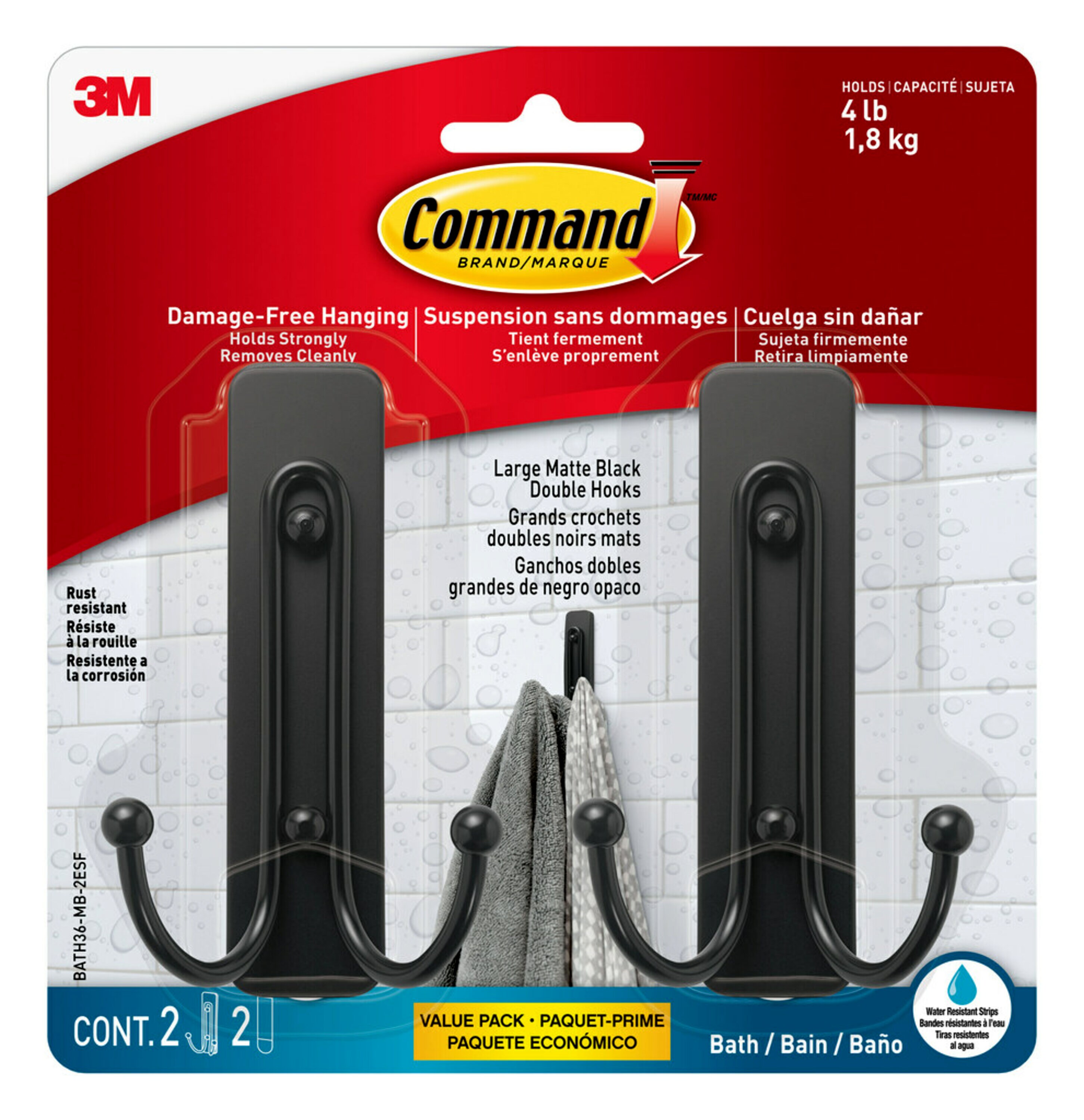 The Command Bath Hook with a water resistant strip allows you to keep your bathroom organized both inside and outside of the shower. The hook sticks to many surfaces, including glass, mirror, tile, fiberglass, wood and painted surfaces. It adheres firmly and comes off leaving no holes or sticky residue, providing a great alternative to unsightly, unreliable suction cups and damaging screws and nails. Moving the hook for reorganization is as simple as applying a refill, waterproof Command Strip!Specifications