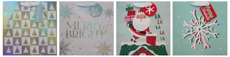 4 ASSORTED HOT STAMP OR GLITTER DESIGNS: 12"L X 4.5"W X 12"HSpecifications