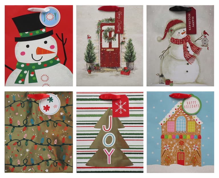 6 ASSORTED HOT STAMP OR GLITTER DESIGNS: 12.5"H x 4"W x 10"L