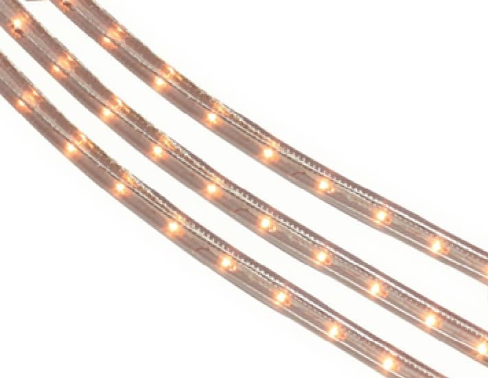 18' LED Rope Lights in Warm White with connectable end cap encased in clear tubeSpecifications