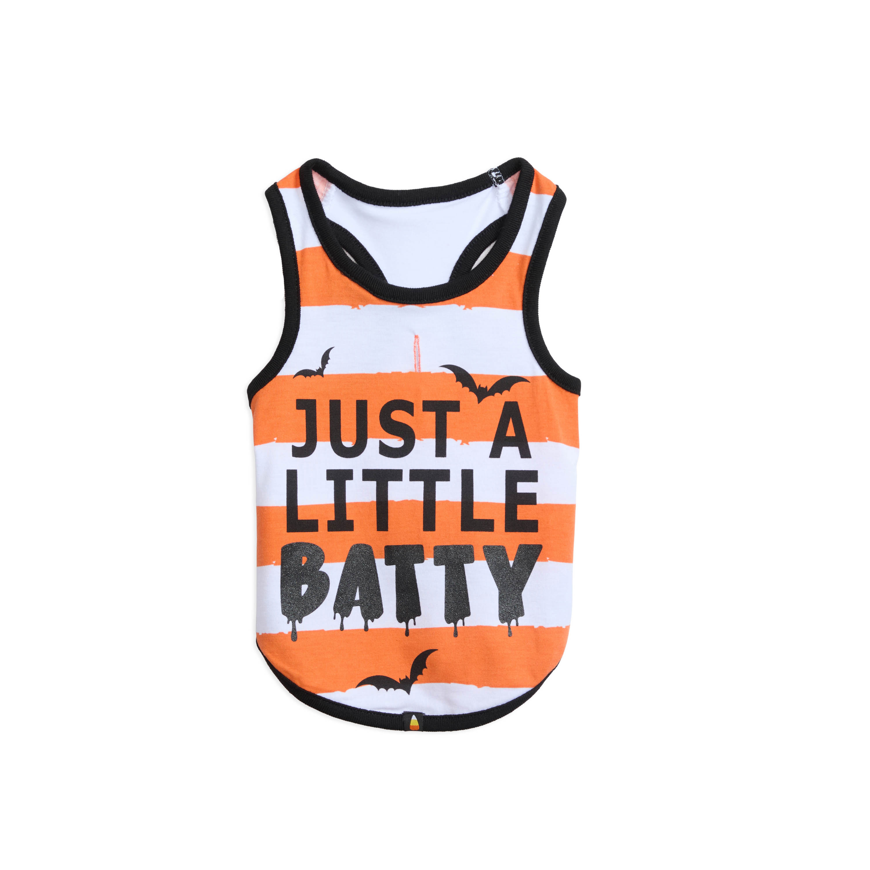 Get playful this Halloween in this cute must-have tank top with "Just A Little Batty" print.Specifications