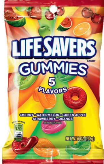 Who could resist the simple joy of the soft, chewy, fruity goodness of LifeSavers Gummies? Who would want to? The classic combination of cherry, watermelon, green apple, strawberry, and orange flavors in Life Savers 5 Flavors Gummies recalls the treats we enjoyed growing up.Specifications