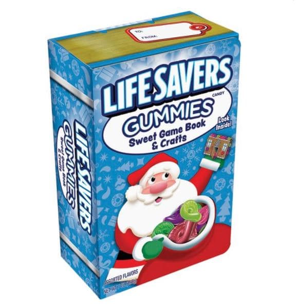 A yummy assortment of fruity, gummy goodness; Gummy assorted flavors could include cherry, raspberry, watermelon, orange, pineapple, or more; LIFE SAVERS Gummies Sweet Game Book & Crafts has Christmastime games and turns into a gingerbread house; Package includes LIFE SAVERS Gummies Sweet Game Holiday Book & Crafts; Perfect as holiday gifts, party favors, stocking stuffers, and thank-yous
