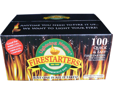 No more messy toxic lighter fluid to kill the flavor no more kindling or newspaper needed; Non-toxic environmentally safe fire-starter Lightning Nuggets; Uses and locations: wood stoves fireplaces fireplace inserts pellet stoves barbecues smokers corn stoves camp fires chimneys back country beach fires lake cabins ski chalets hiking fire-pits wood burn