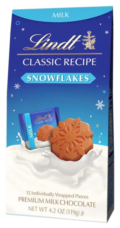 7.1 OZ; CHRISTMAS PACKAGING; CLASSIC RECIPE; MILK CHOCOLATE; SHAPED LIKE SNOWFLAKES