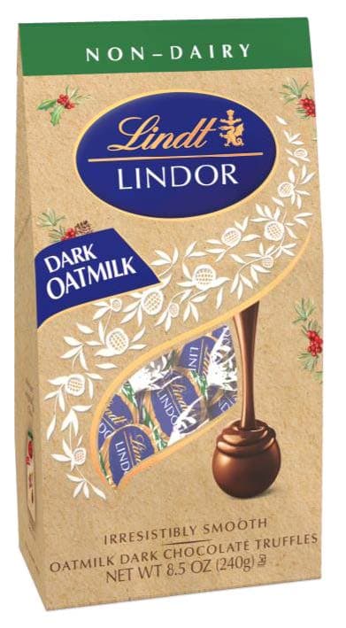 LINDT LINDOR OATMILK DARK CHOCOLATE TRUFFLES ARE HERE. THESE NON DAIRY CHOCOLATE TRUFFLES ARE SIMILAR TO THE ICONIC DARK CHOCOLATE TRUFFLES WE ALL KNOW AND LOVE BUT CRAFTED WITH OATMILK USING PLANT BASED MILK. GET THE SAME SMOOTH MELTING CHOCOLATE EXPERIENCE IN A FINELY CRAFTED PREMIUM OATMILK CHOCOLATE SHELL.Specifications