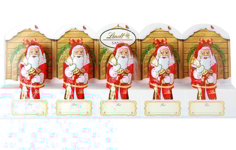 FILL YOUR FRIENDS AND FAMILY WITH DELIGHT BY GIFTING THEM ONE OF THESE MINI SANTAS. EACH INDIVIDUAL SANTA CAN BE USED AS A FESTIVE PLACE SETTING OR A UNIQUE GIFT TAG. THESE ARE PERFECT SMALL GIFTS OR STOCKING STUFFERS THAT ARE CREATED WITH PREMIUM SWISS CHOCOLATE AND DRESSED IN FESTIVE FOILSpecifications