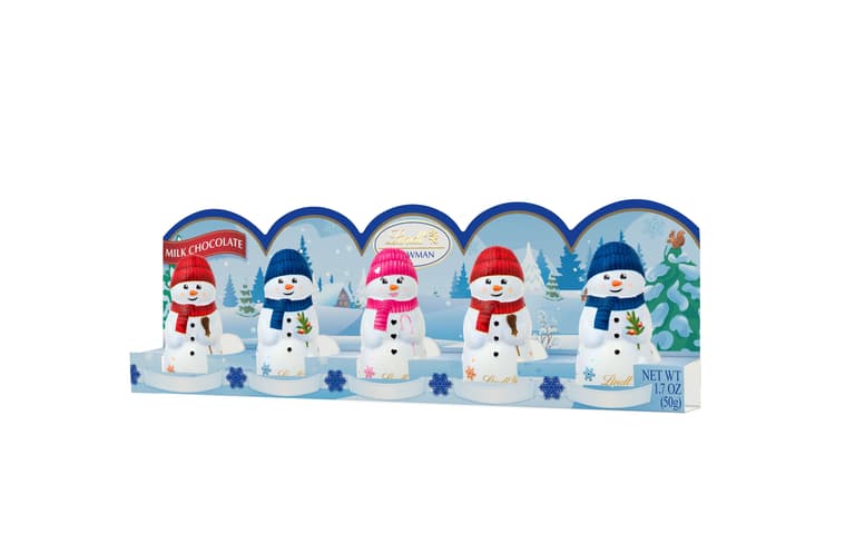 1.7 OZ; 5 CT; MILK CHOCOLATE; SNOWMAN SHAPED; WRAPPED IN DECORATIVE FOIL