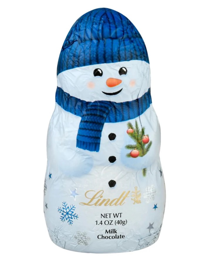 1.4 OZ; MILK CHOCOLATE; SHAPED LIKE A SNOWMAN