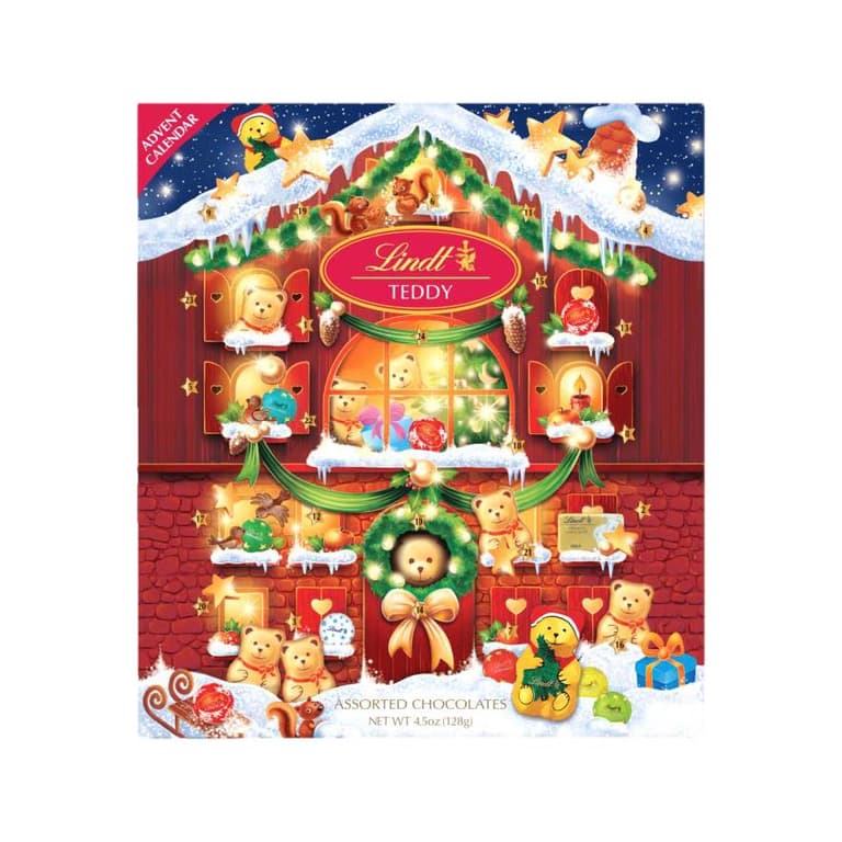CELEBRATE THE SEASON WITH LINDT TEDDY BEAR ADVENT CALENDAR. BEHIND EACH WINDOW YOU WILL FIND A DELICIOUS LINDT CHOCOLATE TREAT INCLUDING LINDT MINI BEAR MILK CHOCOLATE, MINI BEAR FRIENDS DOUBLE MILK CHOCOLATE, MINI MILK CHOCOLATE BALLS, MINI HAZELNUT MILK CHOCOLATE BALLS, MINI MILK CHOCOLATE BALLS AND MINI MILK CHOCOLATE NAPOLITANS. EACH PIECE IS INDIVIDUALLY WRAPPED IN FESTIVE FOIL MAKING IT PERFECT FOR SAVORING FOR YOURSELF OR SHARING WITH FRIENDS OR LOVED ONES.Specifications