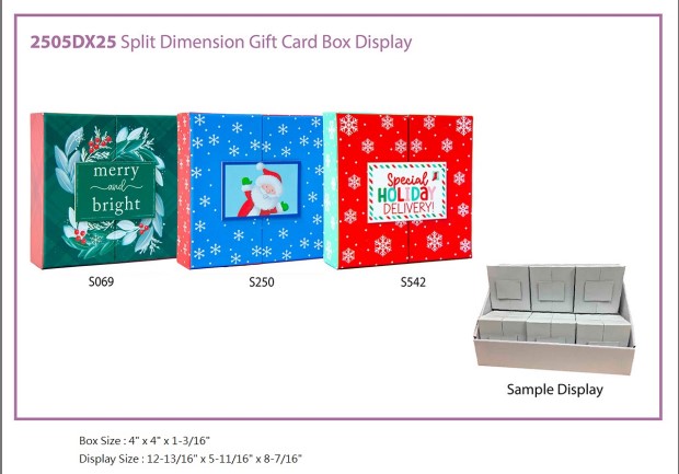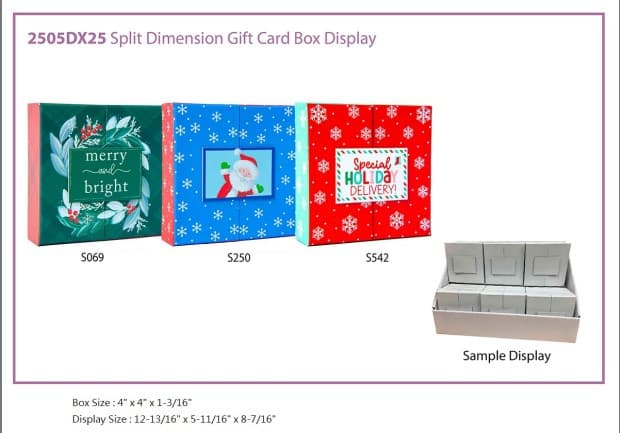 Selection Varies for Online Orders.Split Dimension Gift Card Box DisplayMERRY & BRIGHT- GREENSANTA IN WINDOW - BLUESEASONAL HOLIDAY DELIVERY - REDSpecifications