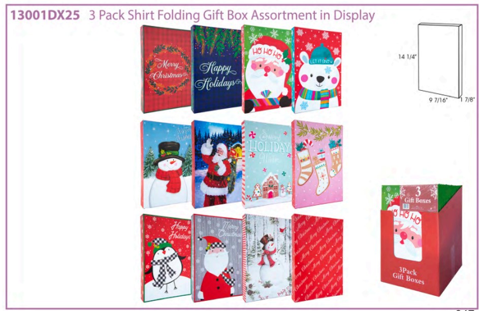 Shirt Box Size: 14-1/4" x 9-7/16" x 1-7/8"