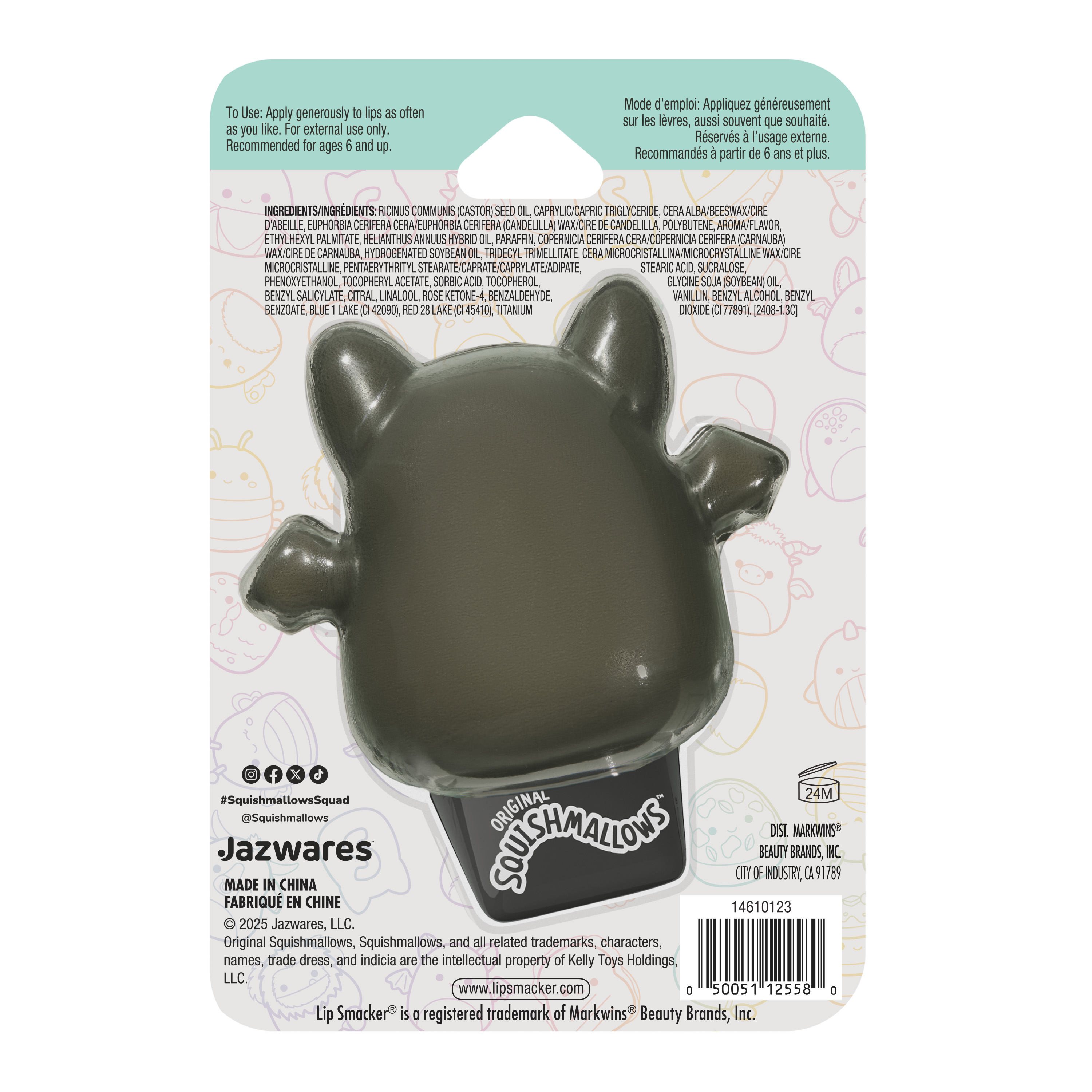 Blackberry flavor; Cruelty-free; Each lip balm features a lovable Squishmallows character to add a touch of charm to your beauty routine; Formulated to provide deep hydration and lock in moisture to keep your lips soft and smooth; Free from harmful chemicals, parabens, and artificial fragrances; We use only premium ingredients to ensure that our lip balms are gentle on your lips