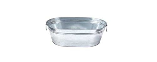 A classic metal tub perfect for stock feeding and watering washing jobs and many other uses. Makes a great deck or patio planter or decor item for a country garden. Heavy-duty galvanized construction prevents rust and corrosion. Features two strong wire handles. Holds 5.5 gallons.Specifications