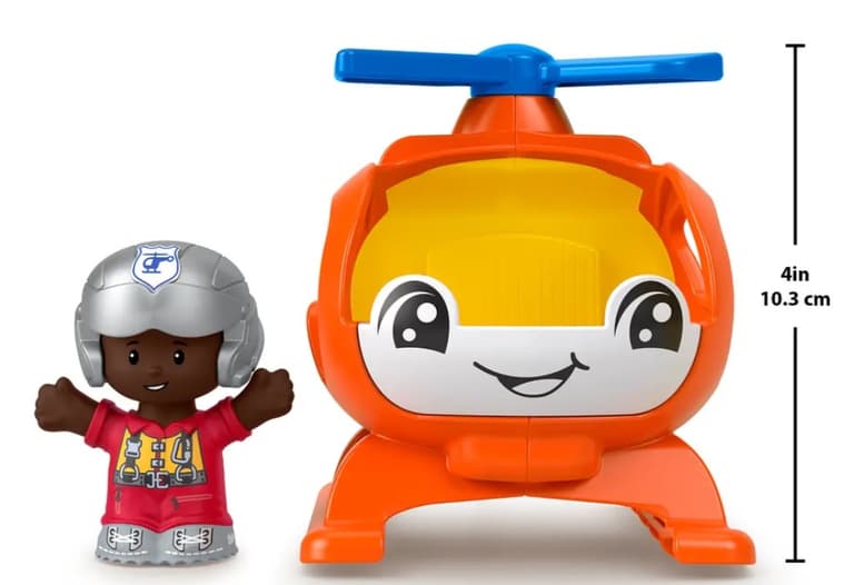 Toddlers can soar into exciting adventures with the Little People Helicopter from Fisher-Price. Styled in a familiar theme from the grownup world and sized just right for small hands to grasp and roll around, this toy vehicle and figure set lets preschool kids use their imaginations to create stories as they play. Look for additional Little People vehicle and figure sets for more toddler-friendly vehicle play! (Additional vehicles sold separately and subject to availability.)Specifications