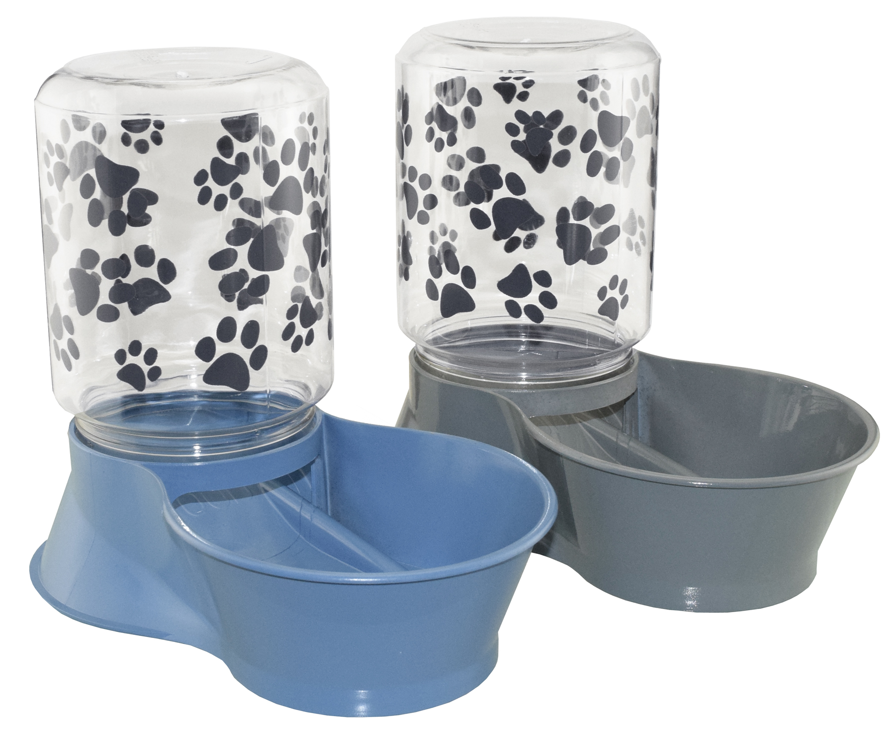 Available in two colors that will be picked at random for an exciting surprise - will you get blue or gray?The Lixit Gravity Feed Dog feeder or waterer can be used as a dry food feeder or a watering bowl. It all depends on which side of the base you choose. Each side of the base is engraved to show which side is for water and which side is for food. Holds 8 cups of dry food or 64 oz of water.Specifications