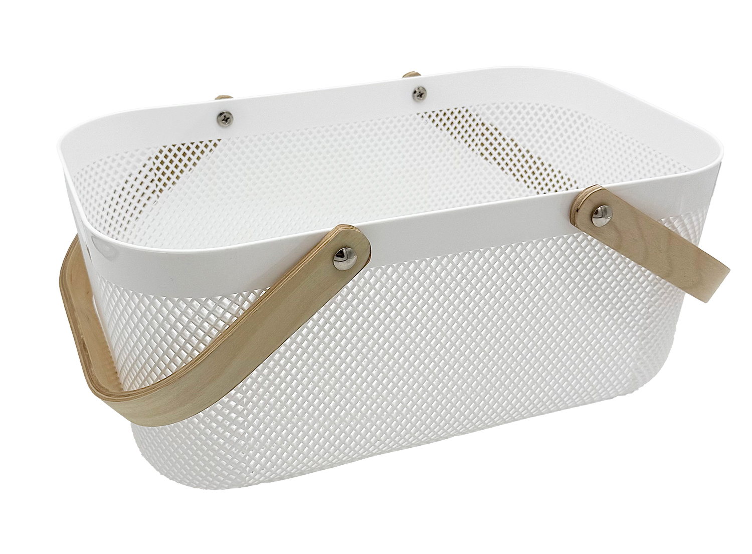 Organize anything you want with this basket. This rectangle bin makes a great container for multipurpose storage. It features wood handle to add morden and elegant texture to your decor. Open top for easy access and spacious capacity, it's perfect for storing toys, books, and other household supplies. The sturdy utility tub comes with wood handle for easy portability, and it can be spot cleaned for easy care.Specifications