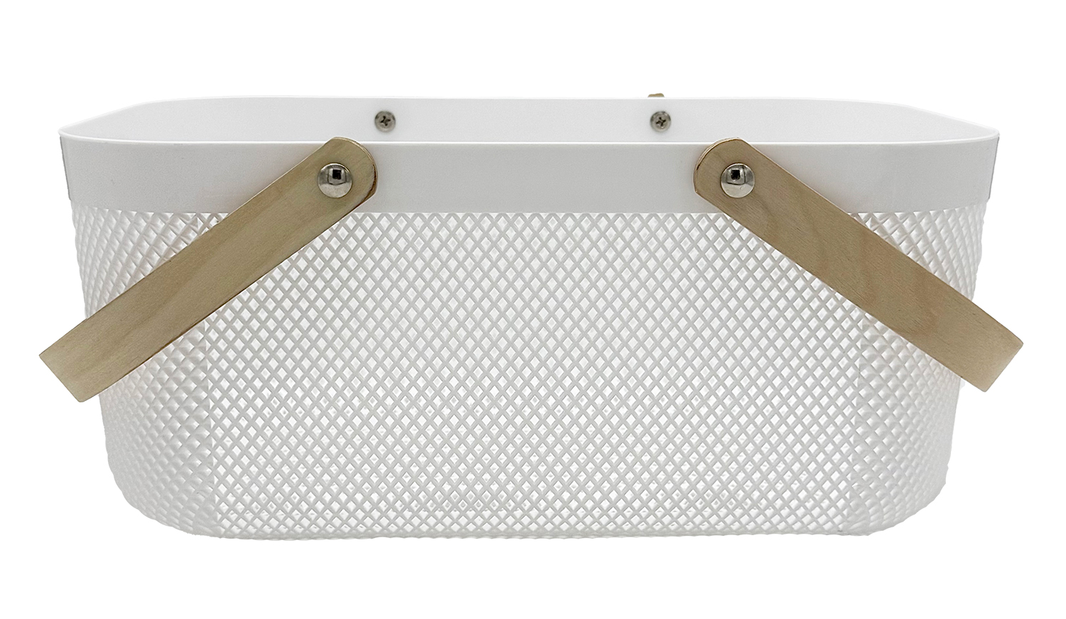 Comes with wood handle; Design to nest when not in use; Durable; Great storage solutions for any occassions