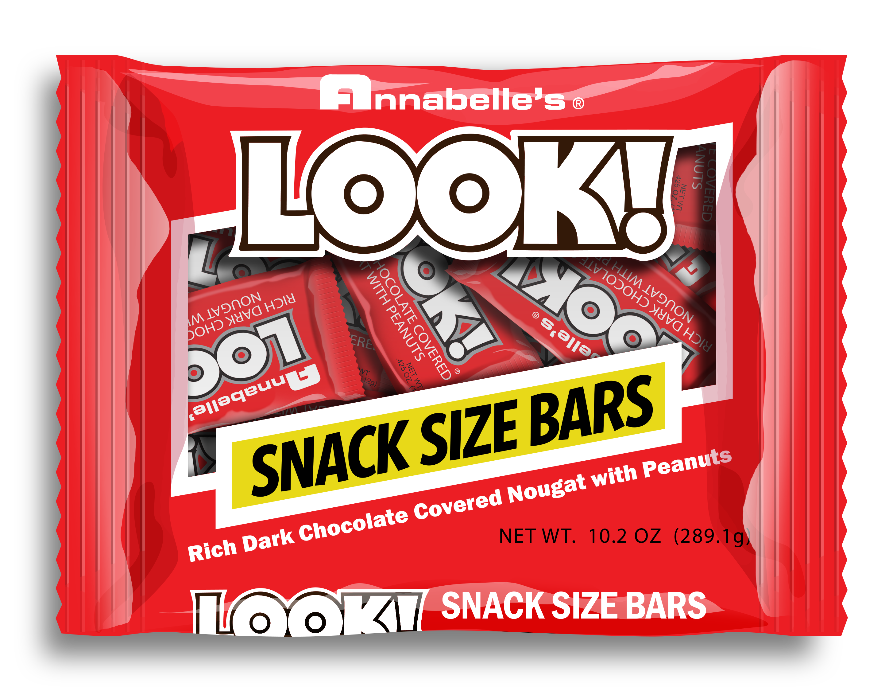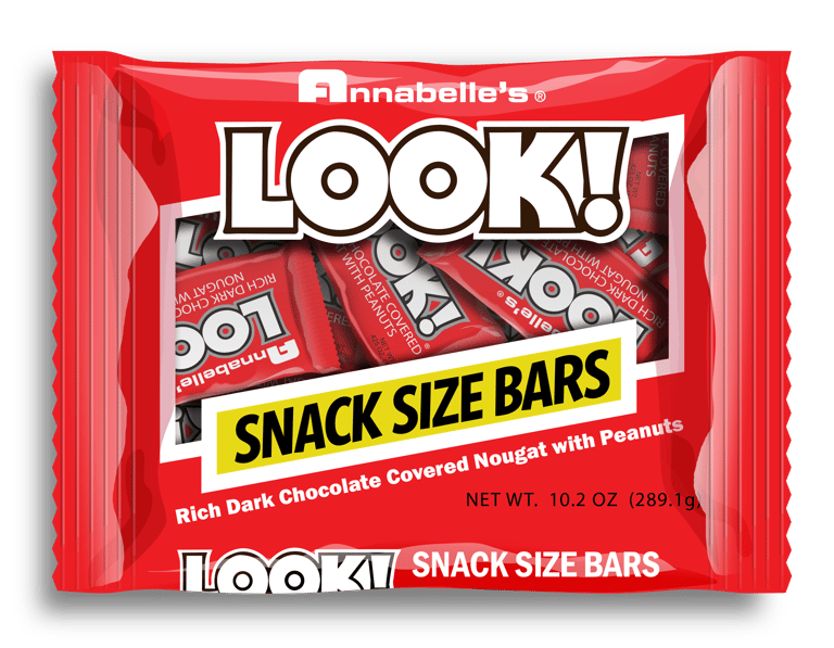 LOOK BARS START WITH SWEET FLUFFY NOUGAT TOPPED WITH CRUNCHY PEANUTS AND DRENCHED IN DARK CHOCOLATE FOR A RICH GOOEY CRISP BITE. THESE MINI VERSIONS WILL KEEP THE NOSTALGIC FEELING GOING A LITTLE LONGER.Specifications