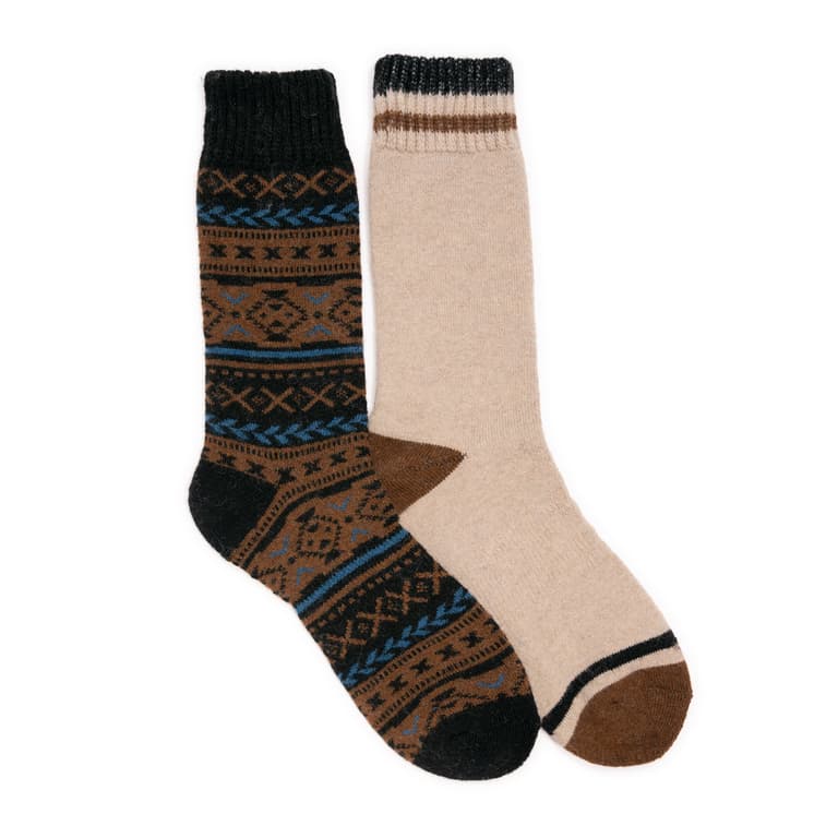 KEEP THE COLD OUT AND THE WARMTH IN WITH MUK LUKS MEN'S TWO-PAIR WOOL SOCKS. BLENDED WITH WOOL, THESE SOCKS WILL NOT ONLY KEEP TOES WARM, YOU'LL ALSO LOOK STYLISH WITH FUN PATTERNS. MACHINES WASH, NO-CHLORINE BLEACH WHEN NEEDED, DRY FLAT.Specifications