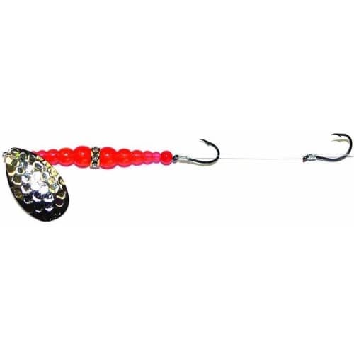 A two-hook setup; Capable of catching larger trout salmon kokanee and other game fish; Hand-tied on monofilament line; Has all the attributes of a classic but bigger; Produces greater action in the water than lures made with wire