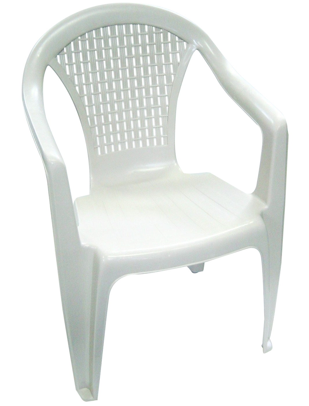 Easy to clean; Rattan Weave Design in Back; Stackable; Weather resistant resin; White