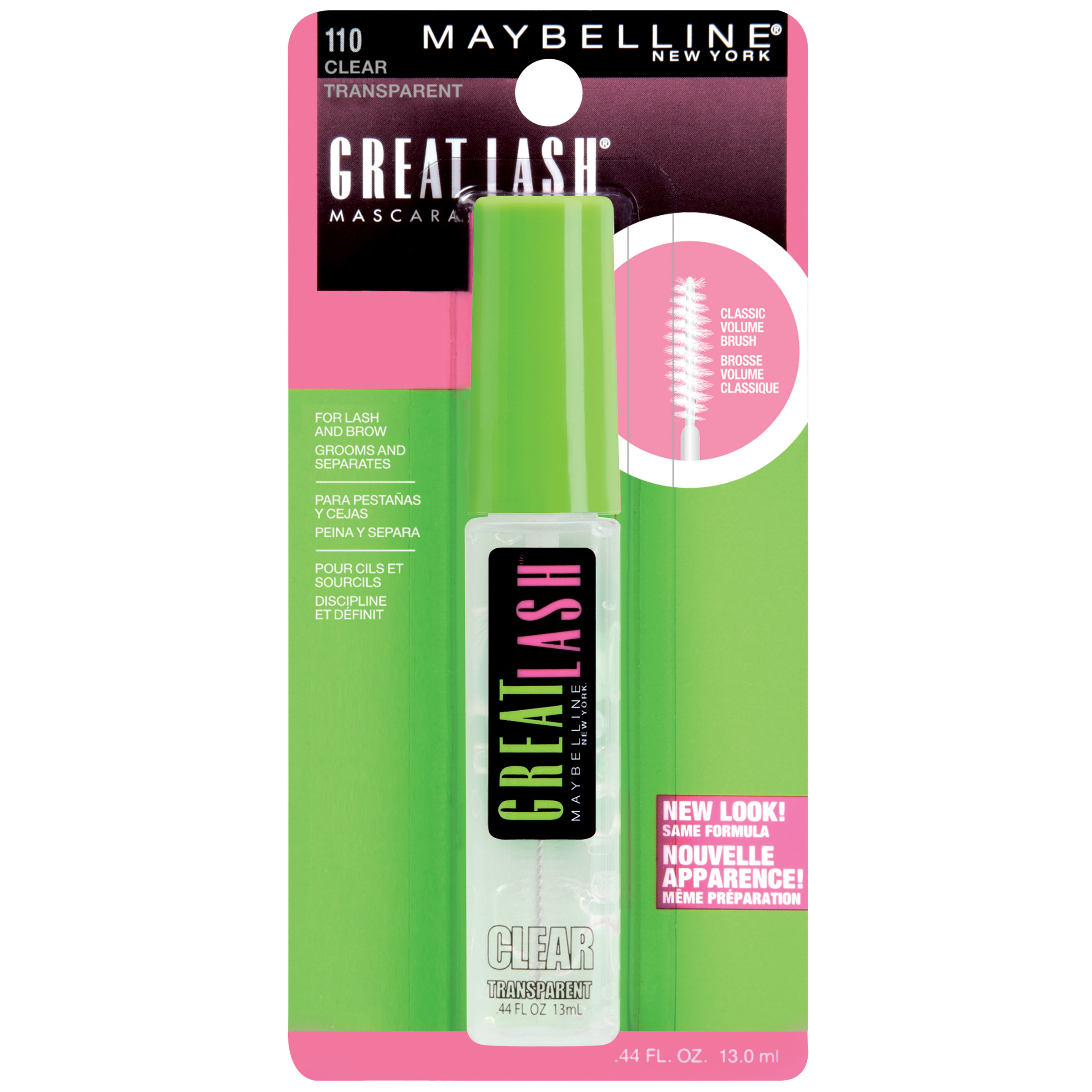 Great Lash Clear Mascara. This gel formula conditions as it separates eyelashes and sets eyebrow makeup. The original pink and green mascara, now in a clear gel formula! The classic Great Lash brush conditions, grooms, and separates eyelashes and brows.Ophthalmologist tested. Suitable for contact lens wearers.Specifications