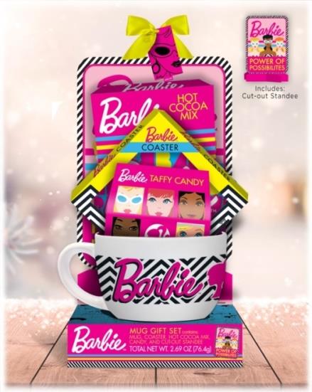 2.69 OZ; BARBIE THEMED; COASTER; CUTOUT STANDEE; HOT COCOA MIX; MUG; TAFFY CANDY