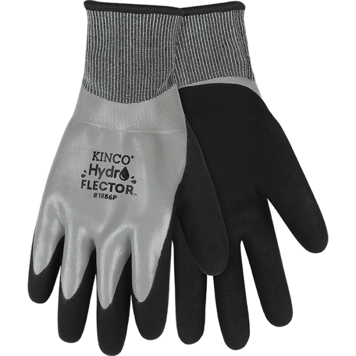 extured black sandy nitrile coated palm provides optimal grip control, & offers dependable puncture & tear resistance.Double-layered knit shell using gray heavyweight 15-gauge 100% polyester outer shell & soft black heavy thermal 7-gauge brushed-loop 100% acrylic inner liner locks in warmth, repels the cold, & wicks away moisture with seamless, form-fitting comfort.Specifications