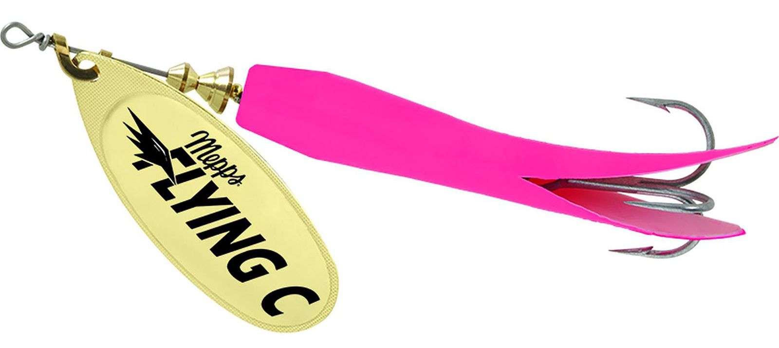 Here is the perfect salmon and steelhead lure for the pier or stream fisherman. It is proven in Alaska and the Pacific Northwest. The Mepps Flying C is a heavyweight spinner that drops deep and stays deep throughout the retrieve. In fact, it's one of Mepps deepest running spinners. Its bright fluorescent sleeve acts as a highly reflective attractor. Bodies are solid brass. Silver blades are genuine silver plate. Gold blades are polished brass. Painted blades are finished with computer age epoxy. All Flying C's are available with either a perma steel treble or single salmon hook.Specifications