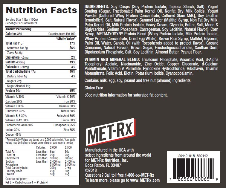The Big 100 Vanilla Caramel Churro protein bar provides power anytime. MET-Rx Big 100 is a meal replacement bar that provides the on-the-go nutrition you need to help fuel your active lifestyle. This nutritious bar has 30 grams of protein and features metamyosyn, to give you the nutrition you require both in and out of the gym. A meal replacement bar with our exclusive metamyosyn protein blend, This power-packed protein bar is a great tasting way to fuel up on demand. Contains 30g of protein featuring metamyosyn and 18 vitamins and minerals. Naturally flavored. Complete hunger satisfaction.Specifications