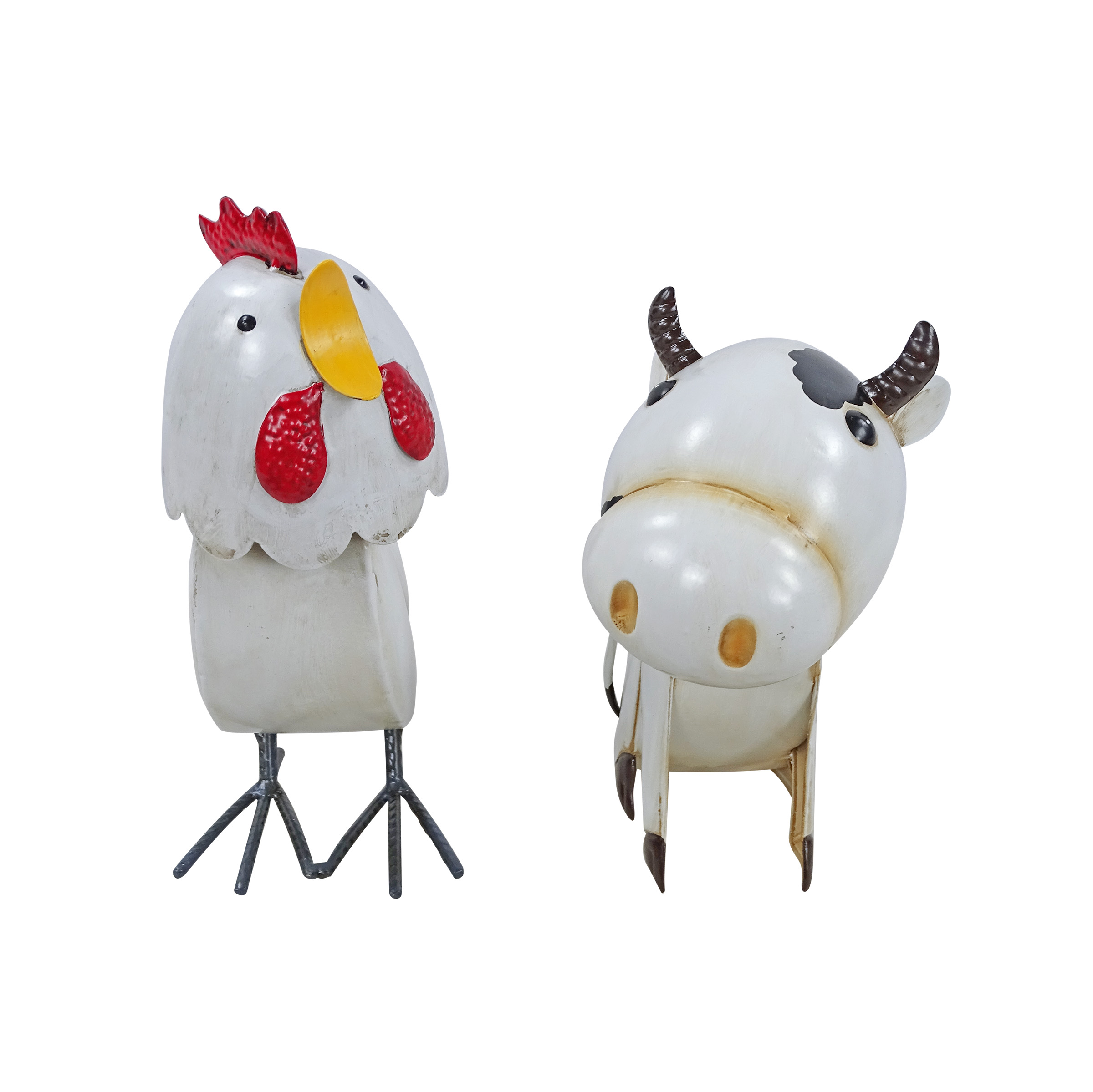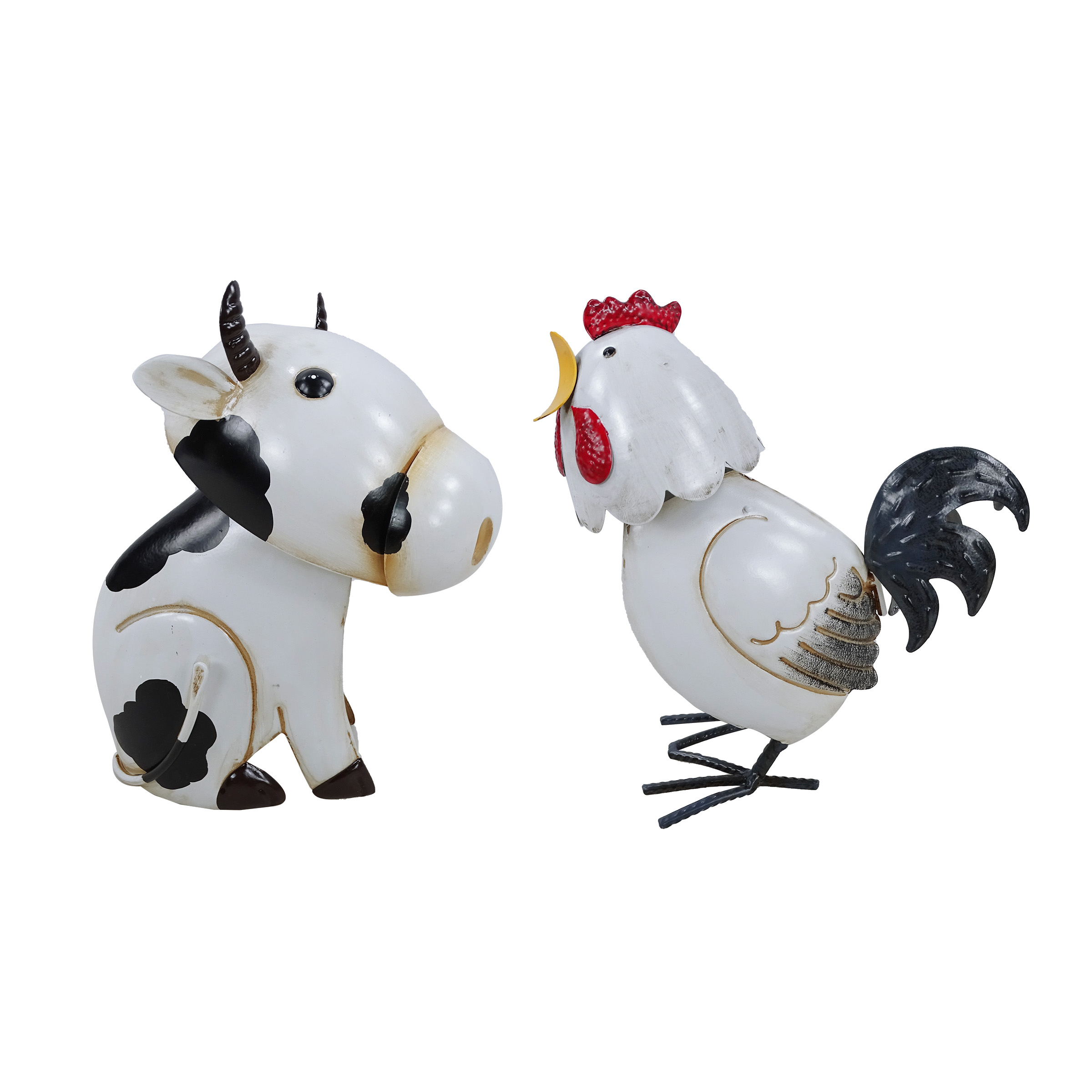 Bring a touch of country fun and farmhouse flair to your home or garden with the Alpine Corporation IPS433ABB Metal Cow or Rooster Bobble Head Decor. Crafted with oversized bobble heads that gently wobble with movement or a breeze. The playful design adds personality, motion, and rustic style to any indoor or outdoor setting.Specifications