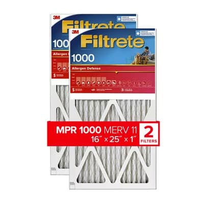 Filtrete MPR 1000 Allergen Air Filters Air Filter, made by 3M, helps capture unwanted particles from your household air to contribute to a cleaner, fresher home environment. Designed with exclusive Filtrete 3-in-1 technology, including a MPR 1000 and MERV 11 rating, your AC filter will help pull and capture countless microparticles - such as pet dander, smoke and smog - while letting cleaner air flow through. Your Filtrete Filter will also capture large particles, including lint, pollen and household dust.Specifications