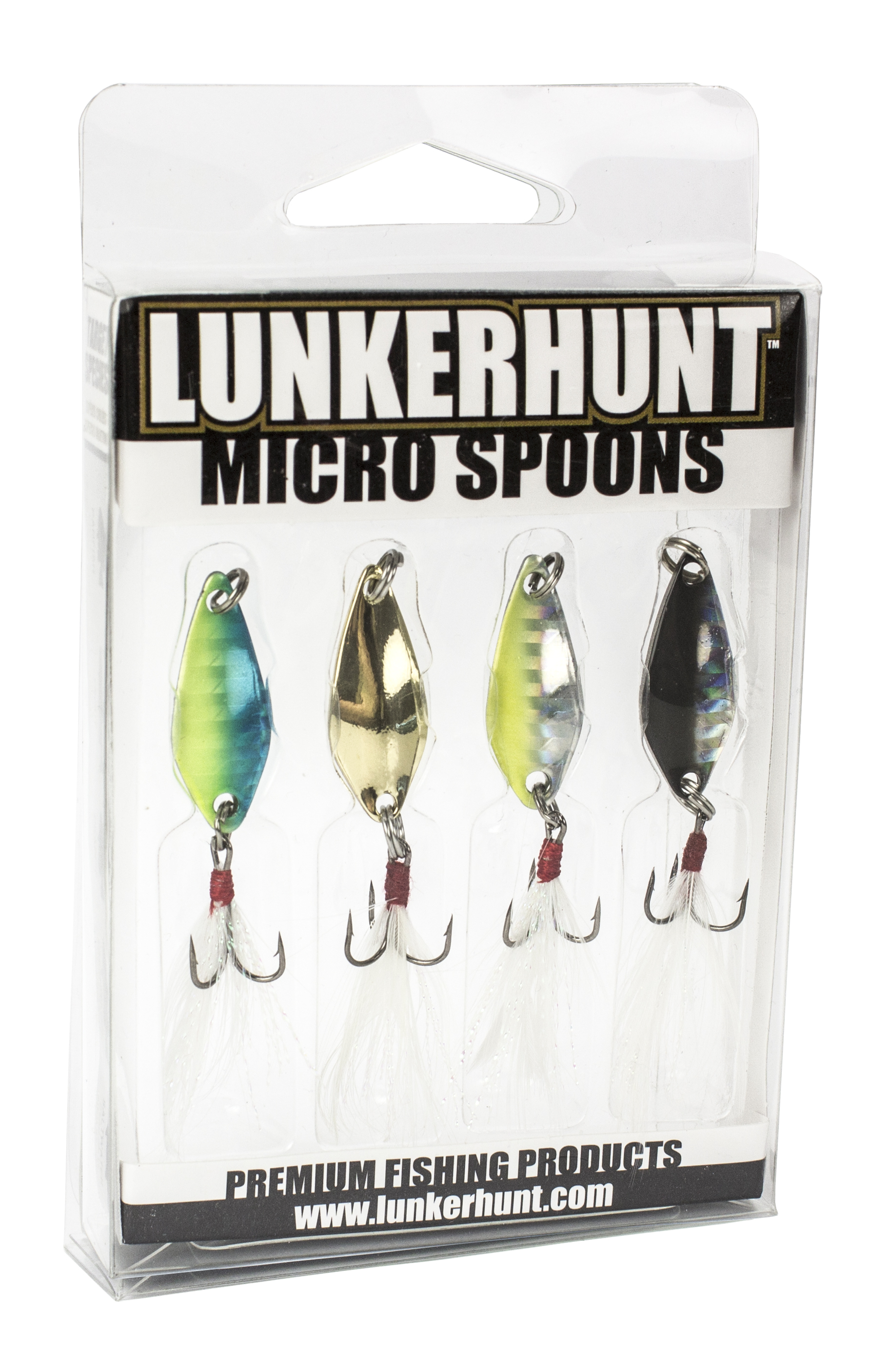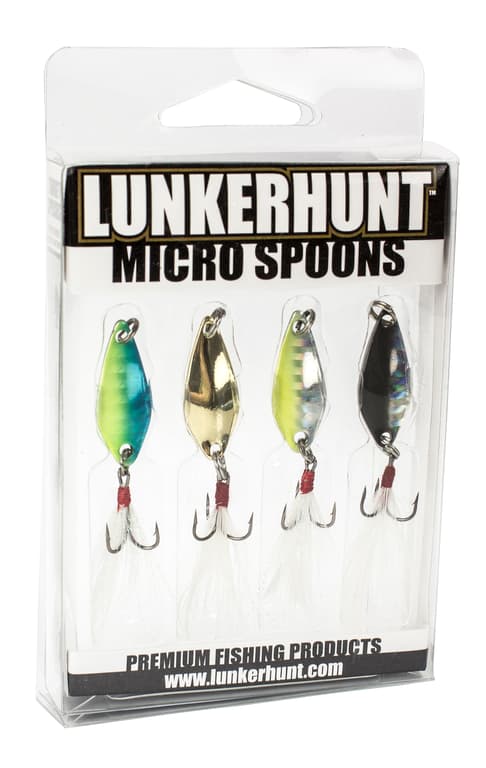 Designed using high quality components, these micro spoons feature a natural quality finish and feathered hook that mimics baitfish. They are heavy enough for long casts yet light enough to generate a subtle high flutter action. Lunkerhunt Micro Spoons come four to a pack. A great value and must have for every tackle box.Specifications