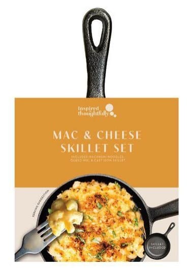 ENJOY A QUICK MOUTH WATERING MEAL WITH THIS MAC & CHEESE SKILLET KIT.THIS CHEESEY CLASSIC INCLUDES MACARONI NOODLES, QUESE MIX AND A CAST IRON SKILLET. THIS SKILLET KIT IS THE PERFECT EASY-TO BAKE TREAT IDEAL FOR ASPIRING YOUNG BAKERS AND A GREAT WAY TO FINISH DINNER WITH A RUSTIC CAST IRON SKILLET THAT CAN BE REUSED AGAIN AND AGAIN.Specifications