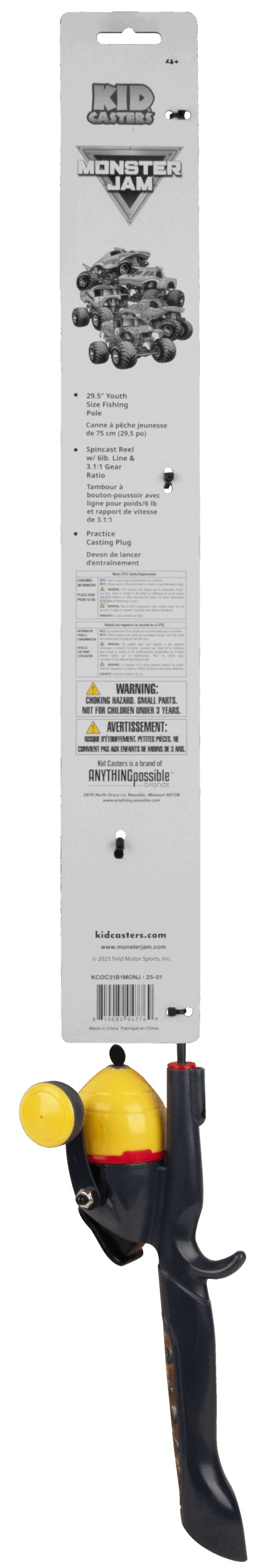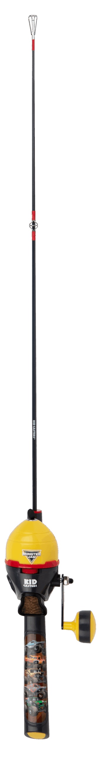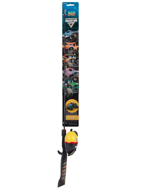 From The Monster Jam Fishing Kit is designed for young anglers ages 4-8 that are ready to have fun out on the water. This kit is at an affordable price and includes a pre-spooled spincast reel, an easy push button for smooth casting, a large kid-friendly knob for a secure grip, and a Monster Jam themed casting plug. This kit appeals to children with it's Monster Jam themed design while ensuring a hassle-free fishing experience.the bold high-viz green accents to vibrant gradient rods and grippy EVA-style handles, every detail is made to stand out.Specifications