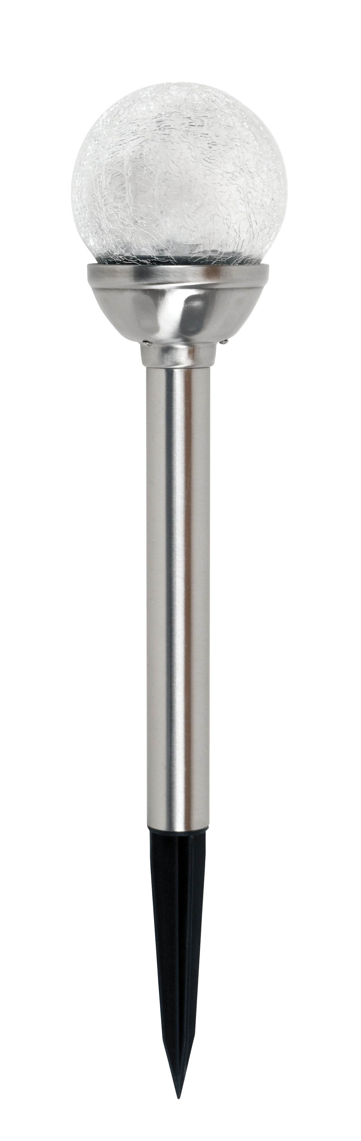 This Moonrays Solar Stake Light with a crackle glass ball lens is ideal to place in flower beds, landscaping, along pathways, or along driveways. The solar stake light stores energy during the day and releases light at night. Producing light in this way is fun, sustainable and makes it easy to do your bit for the environment. This is offered in both stainless steel as well as bronze so that you can choose the color that suits your landscape best, as well as switch from a bright white to a color changing LED with the included dual switch.Specifications