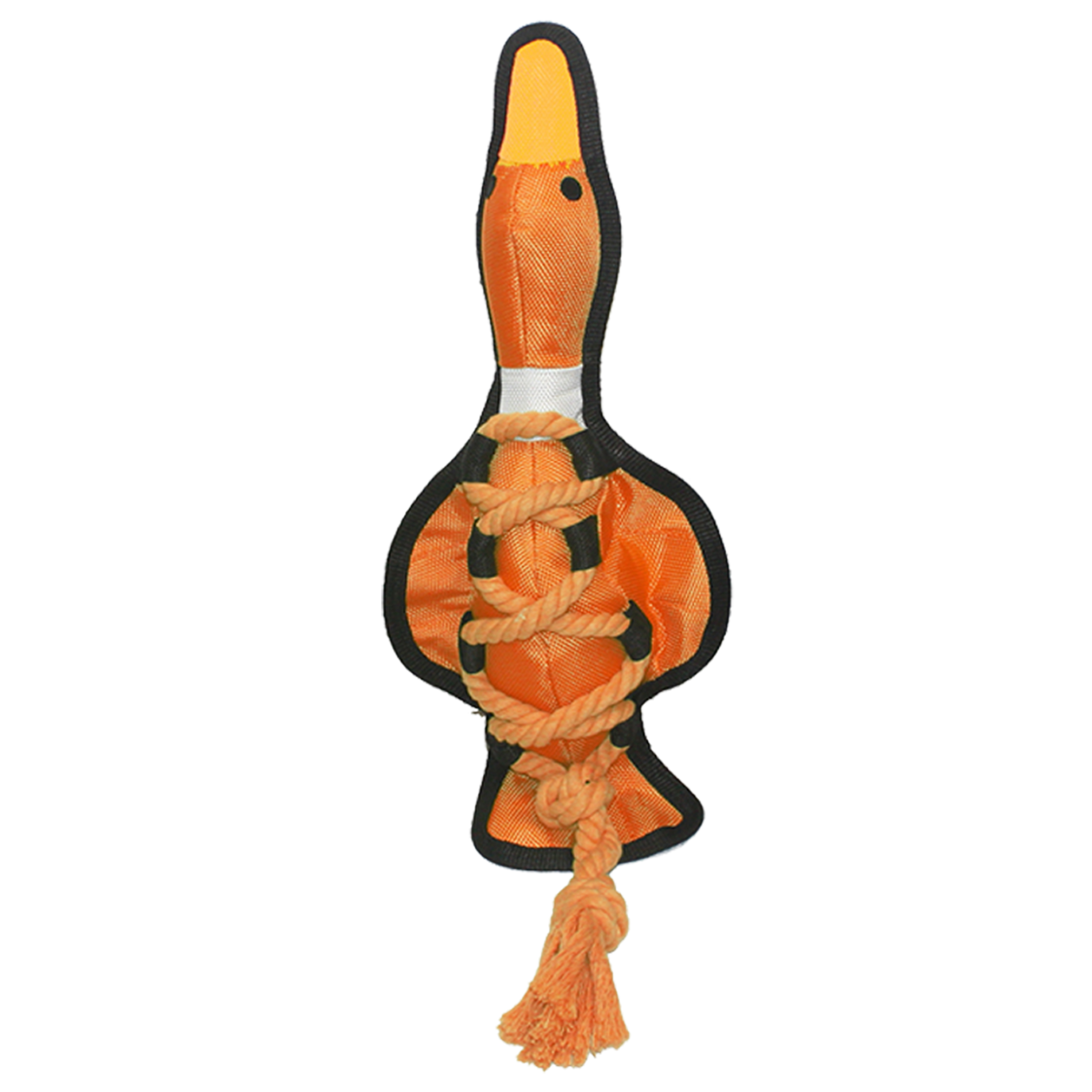 (WE CANNOT GUARANTEE A SPECIFIC COLOR) If you'd like us to choose for you, we are more than happy to do so. If not, please visit in store to pick your favorite color.Multipet's Cross Ropes Ducks are nylon covered double stitched dog toys are designed for indoor and outdoor play. These brightly colored ducks have a rope for tug and retrieving and are plush filled with a plastic noisemaking squeaker. These toys are great for play on land and water, tug-o-war and fetch.Specifications