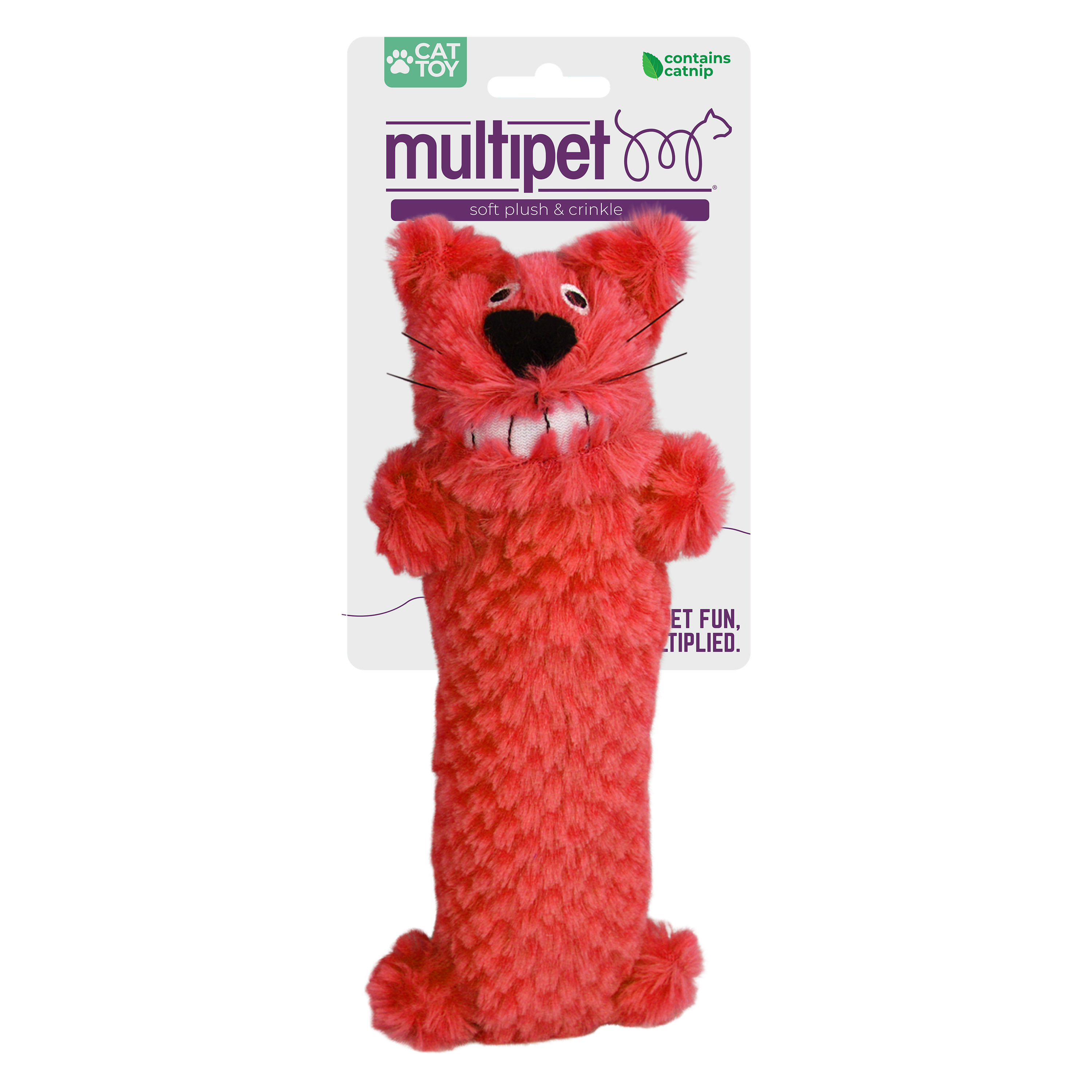 assorted colors; enticing catnip scent; features inner crinkle; Long, plush toy