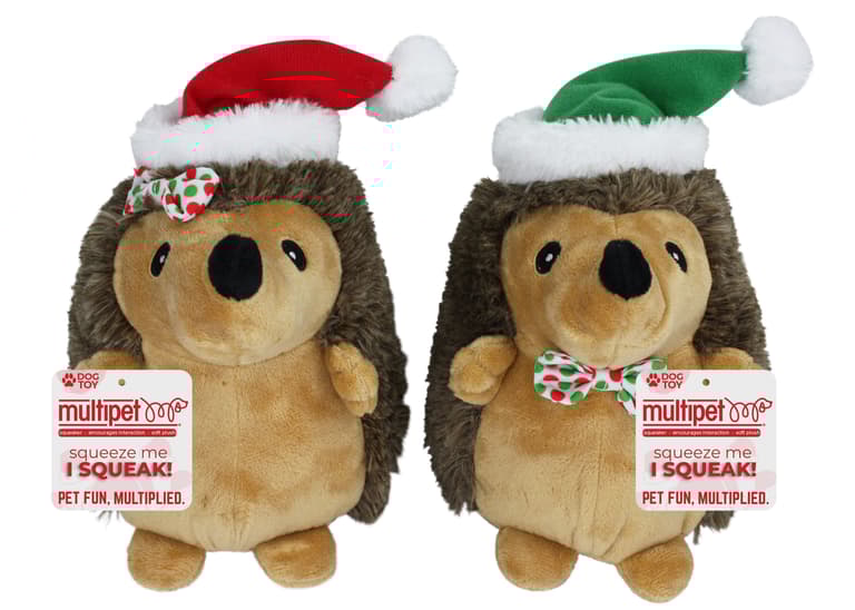 (WE CANNOT GUARANTEE A SPECIFIC STYLE OR COLOR) If you'd like us to choose for you, we are more than happy to do so. If not, please visit us in store to pick your favorite color.Dogs will love these plush mini hedgehogs for the Holiday season. With soft fur and a squeaker inside, these cute critters can take your dog from nap time to play time!Specifications