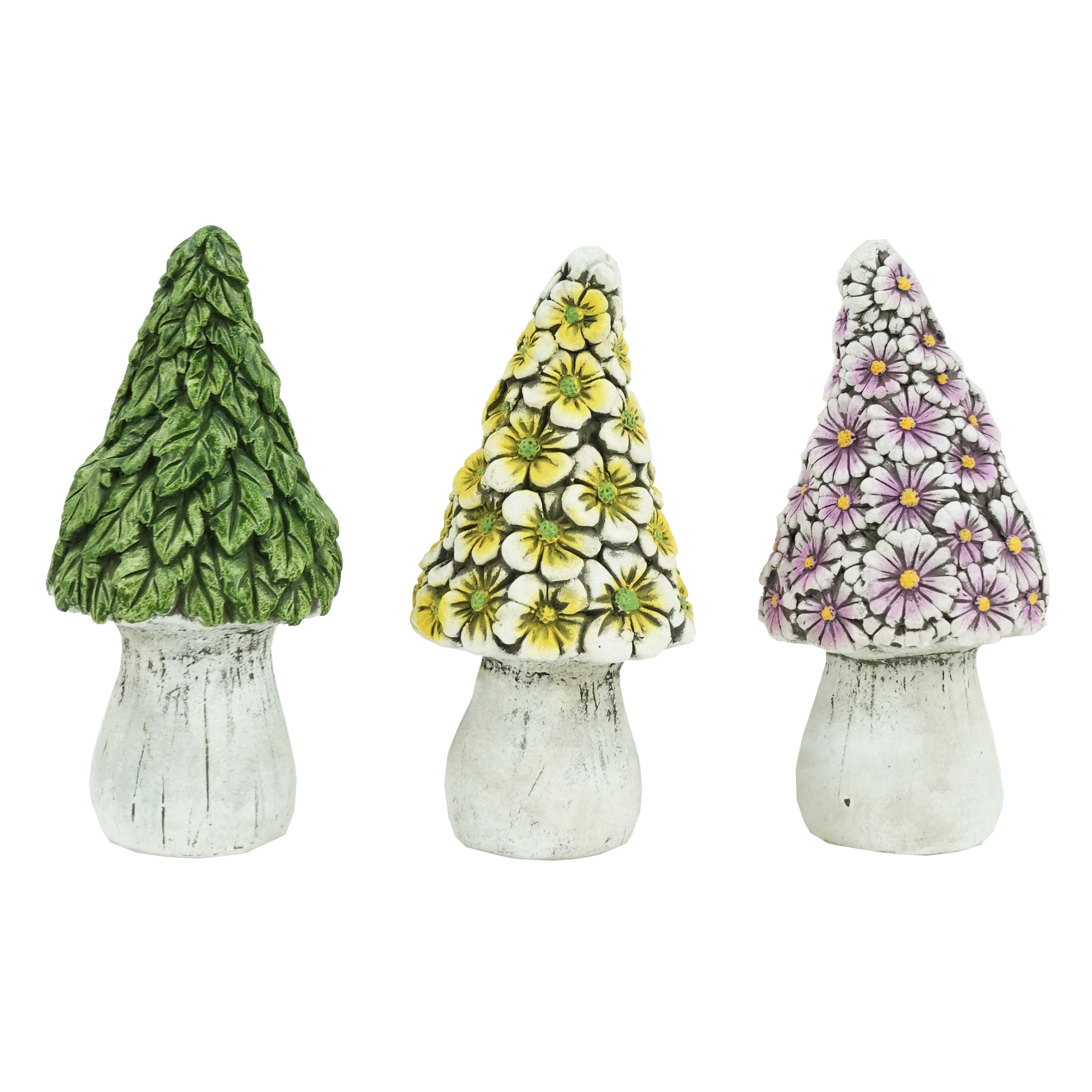 Add vibrancy and enchantment to your home, garden, or outdoor spaces with the Alpine Corporation KGD616ABB Yellow/Purple/Green Mushroom Statuary. This delightful collection features twelve intricately crafted mushroom statues, each showcasing bright and bold colors in yellow, purple, and green.Specifications