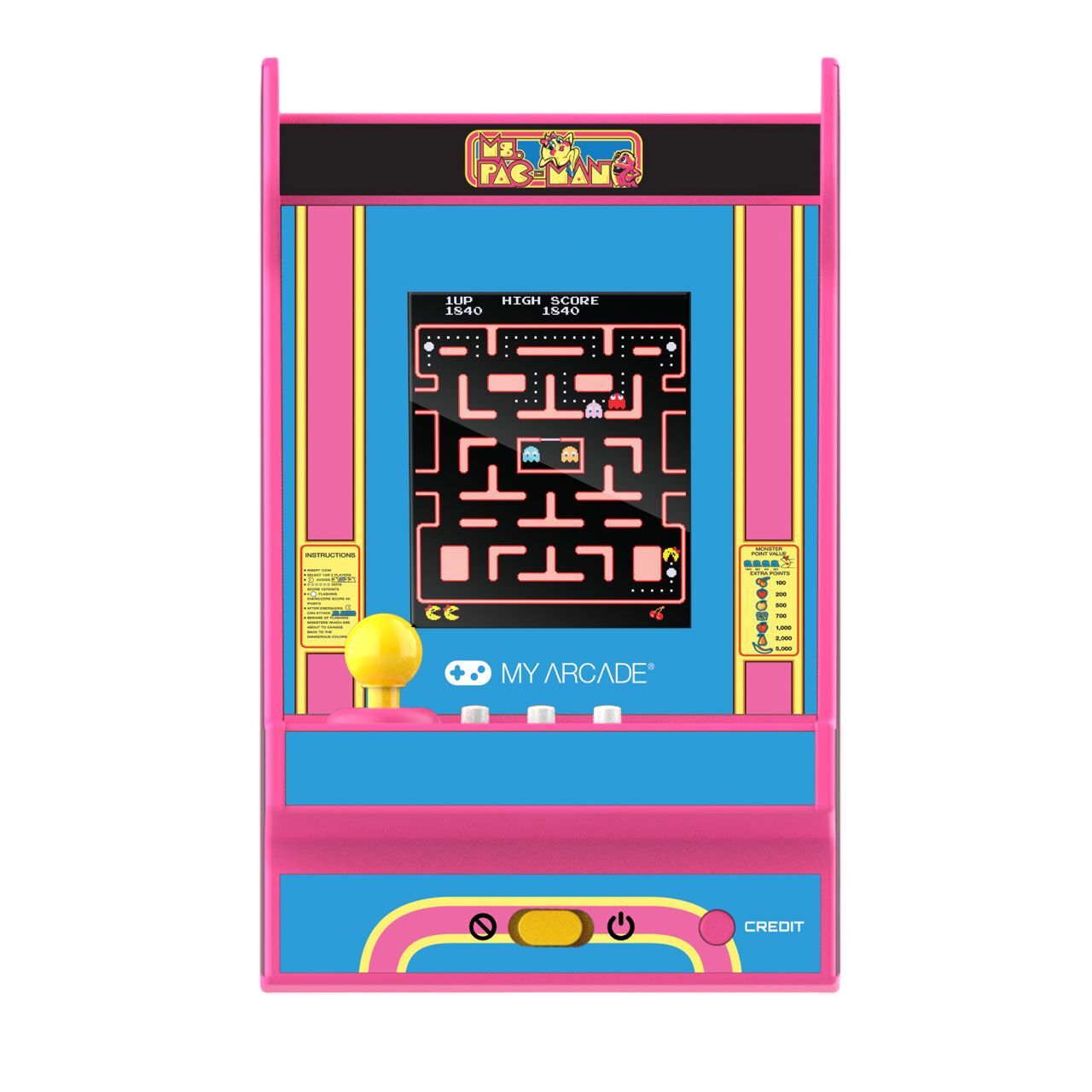 Ms.PAC-MAN is the iconic arcade game that took the world by storm in 1982. With her pink bow and power pellets, she's a gamer favorite who's still going strongSpecifications