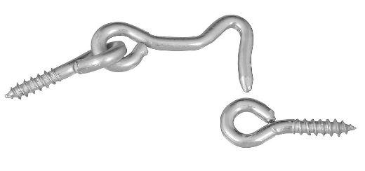 Designed as a general purpose hook and eye for doors, gates, etc. Easy installation. Sharp screw points bite into wood easily and quickly. For interior and exterior applications. Manufactured from steel.Specifications
