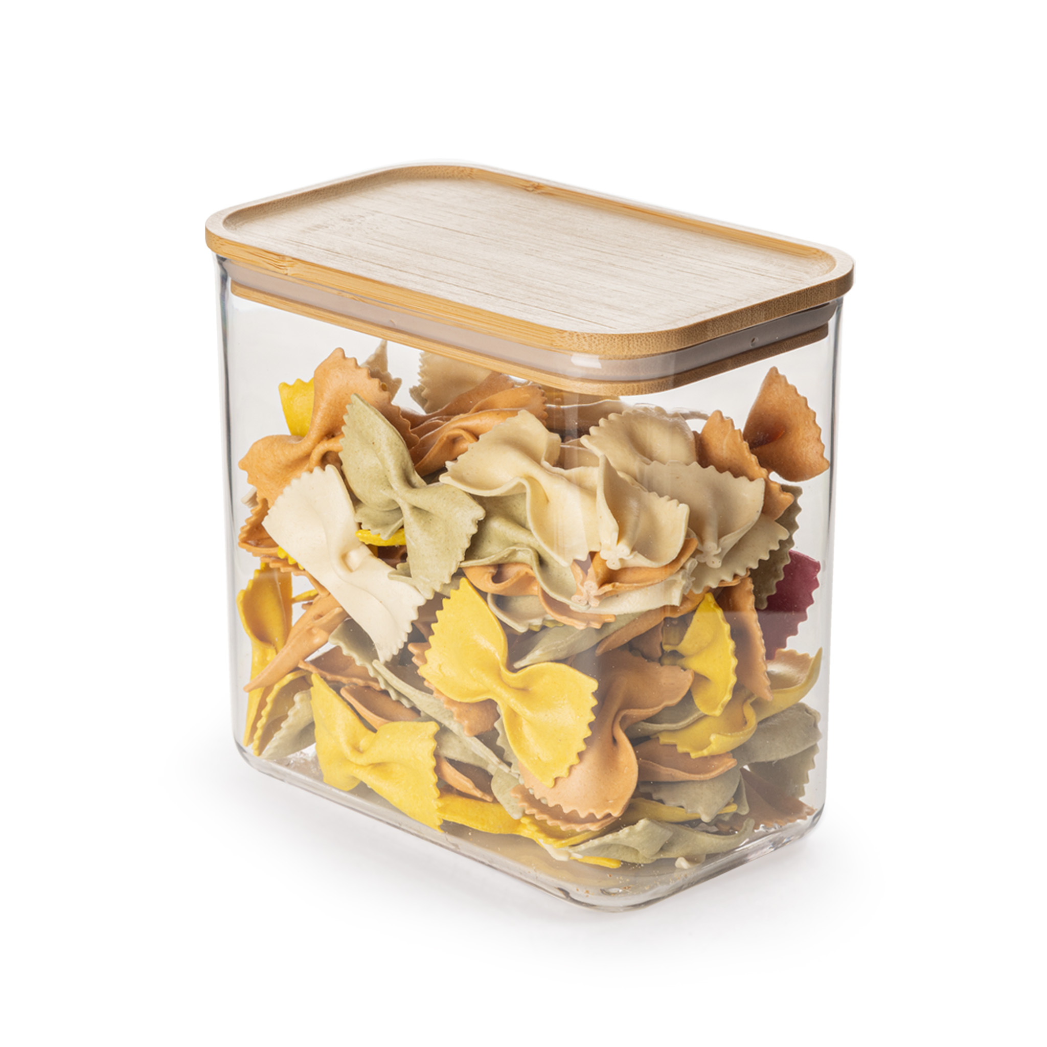 The Naturals Smart Design Medium Rectangle Food Canister features a clear plastic construction to help you see the contents and the wooden airtight bamboo lid. Keep your food dry and fresh while extending its shelf life in the food safe canister with the airtight natural bamboo lid.Specifications