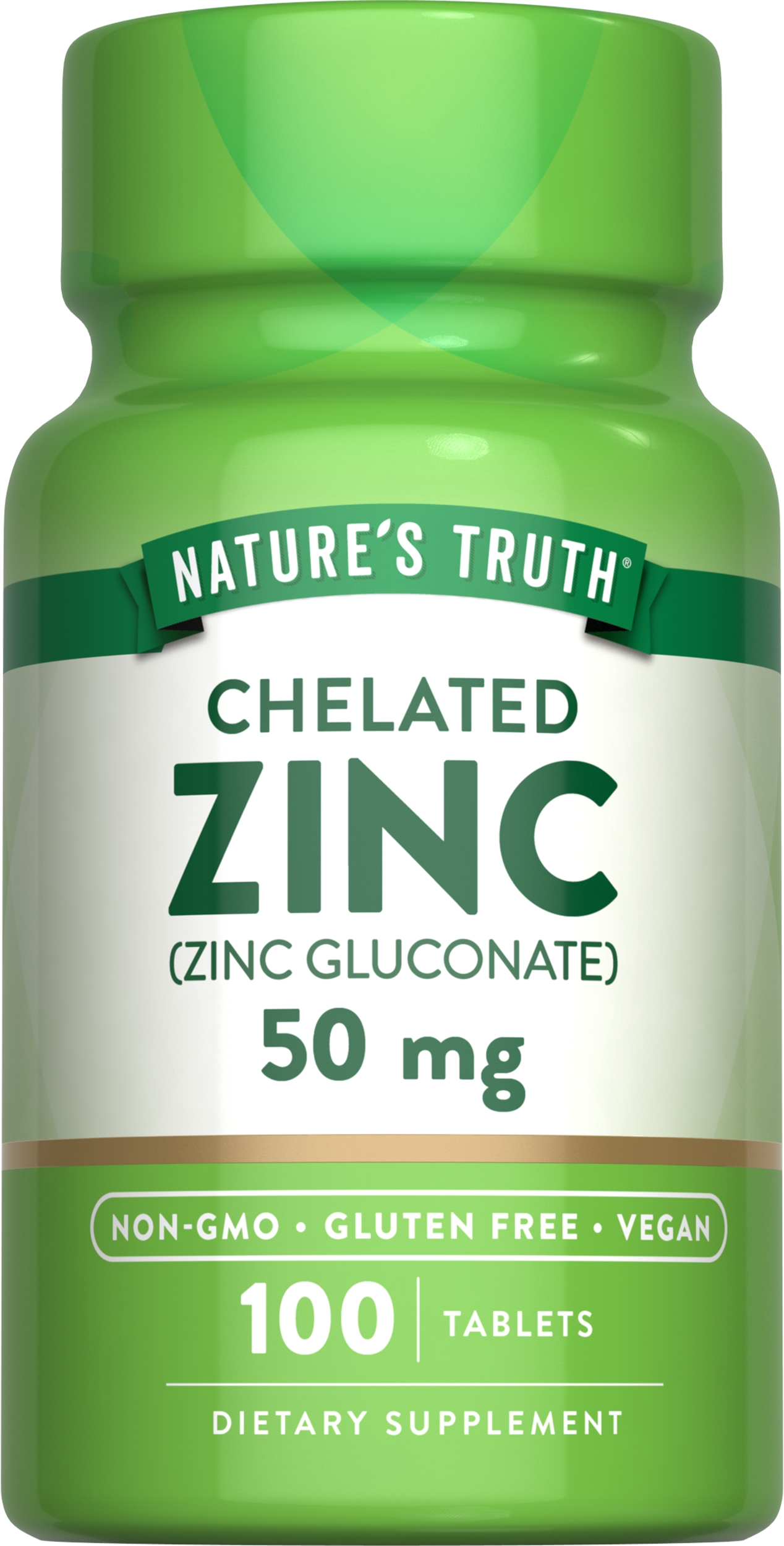 Get the antioxidant support you need for overall health and wellness with Chelated Zinc! Zinc is an essential mineral. Like all minerals, the human body cannot make Zinc on its own so it must be obtained every day from the foods you eat or the supplements you take.This Chelated Zinc delivers 50 mg of Zinc in each vegetarian tablet, and one a day is all you need to help support health and wellness all year long. Our Zinc is chelated, which means each tablet is specially designed to enhance the absorption of this essential nutrient in your body.We know how important a clean wellness experience is for you and the ones you love. That’s why we only use the very best ingredients in the creation of our Chelated Zinc. Our vegetarian-friendly tablets are Non-GMO, gluten free, dairy free and soy free, and are created without any artificial colors, artificial flavors, artificial sweeteners or preservatives so you can get the pure and honest nutrition you’ve come to expect from Nature’s Truth.Specifications
