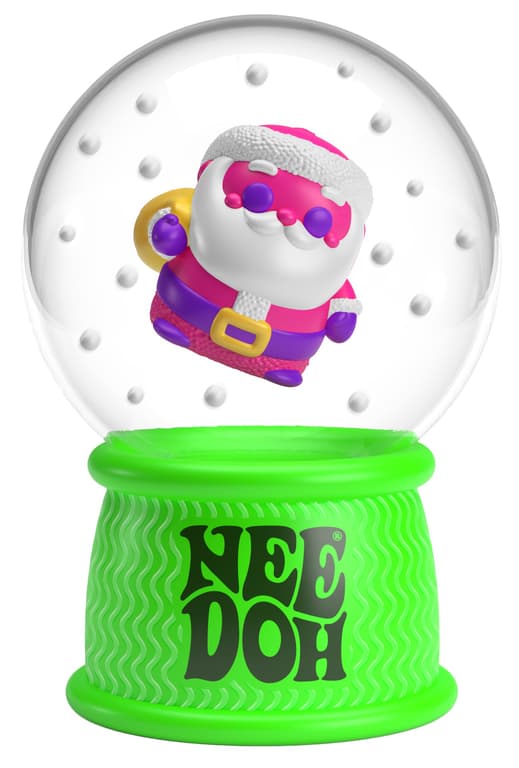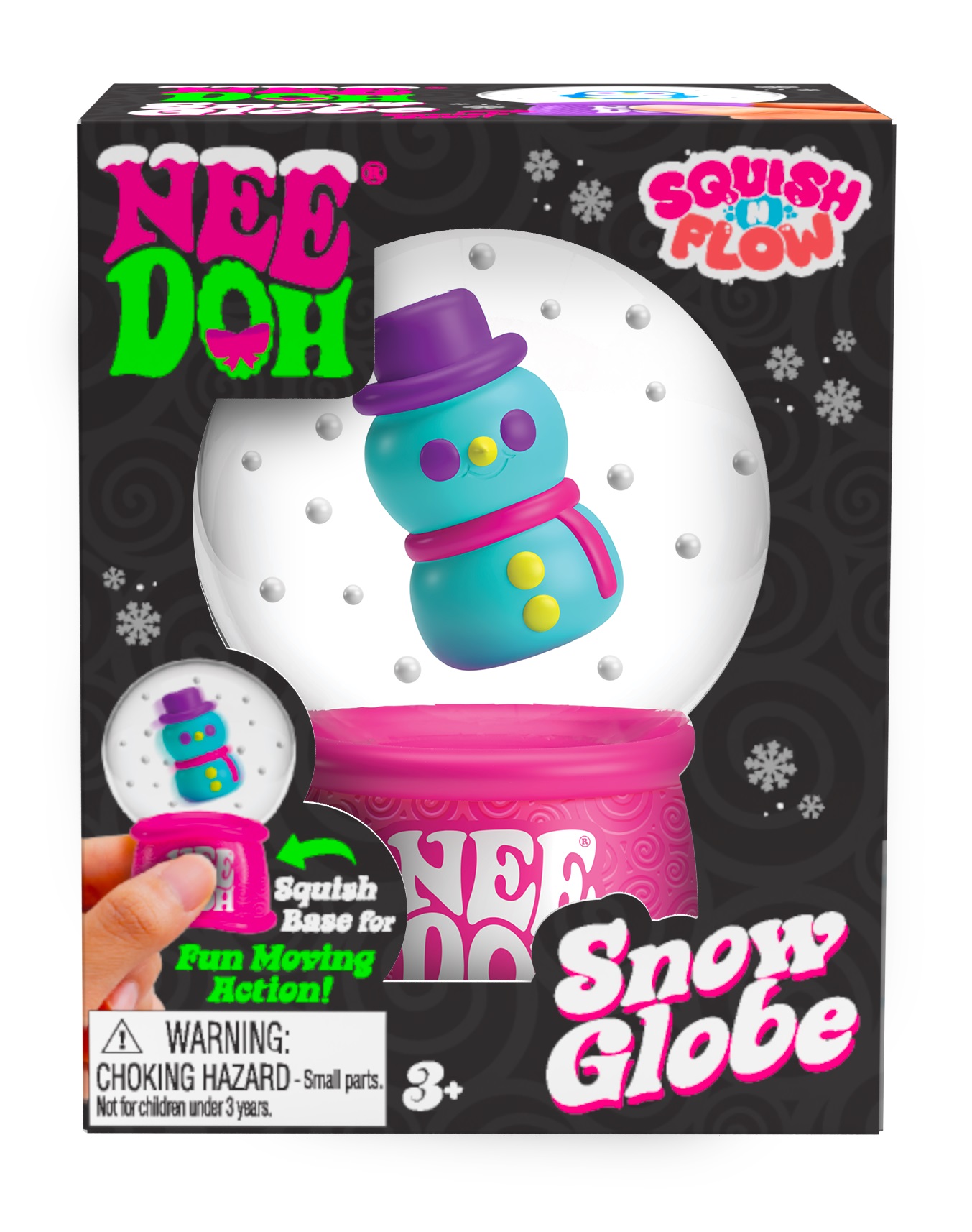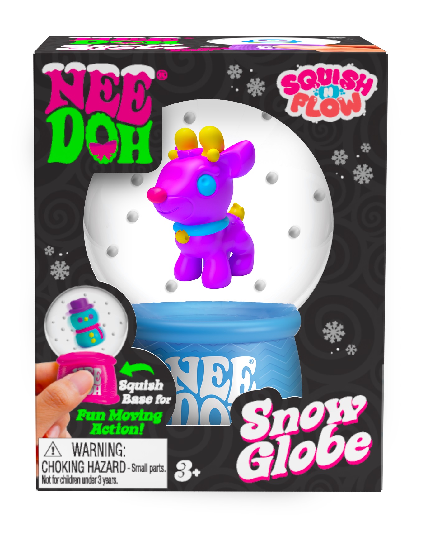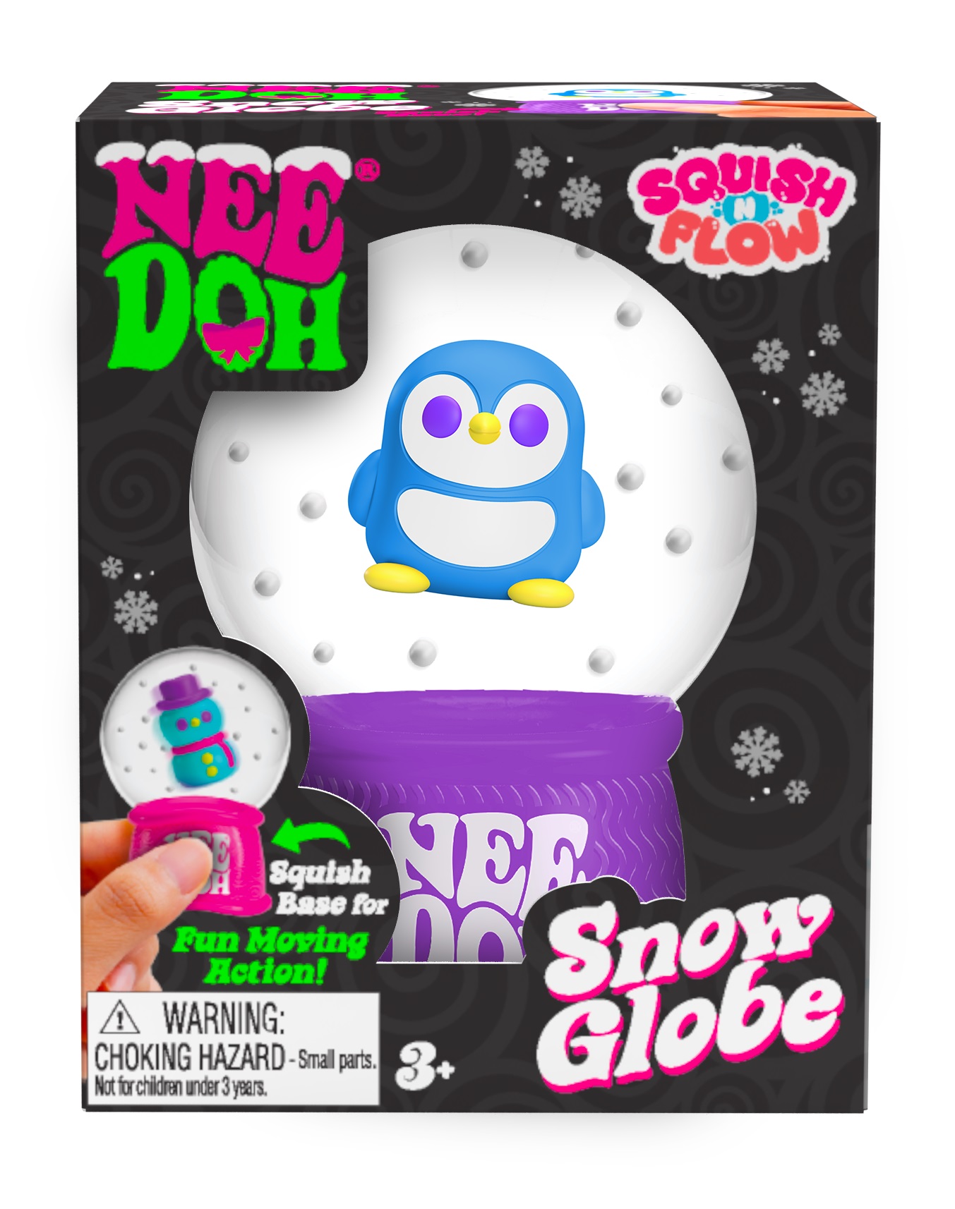 COLOR CHOICE NOT GUARANTEED FOR ONLINE ORDERSThe NeeDoh Squish’n Flow Snow Globe is 2.25 inches tall and comes with three different characters inside: Penguin, Rudy the Reindoh, or Grooby the Dohman. Squeeze it and it activates the snowflakes inside the globe.The NeeDoh Squish’n Flow Snow Globe can be squeezed, pulled, stretched, and massaged to provide calmness, and reduce stress. A mounting base holds the globe. The mounting base comes in three colors: Purple, Pink, and Blue. When squeezed, it gives a sensory satisfaction. It is completely safe and non-toxic. It contains no BPA, phthalates or latex; cleans easily with soap and water. A great fidget toy appropriate for those with ADD ADHD OCD Autism. Nee Doh products are brought to you exclusively by Schilling Toys, the award-winning world leader dedicated to creating engaging products that inspire joy.Specifications