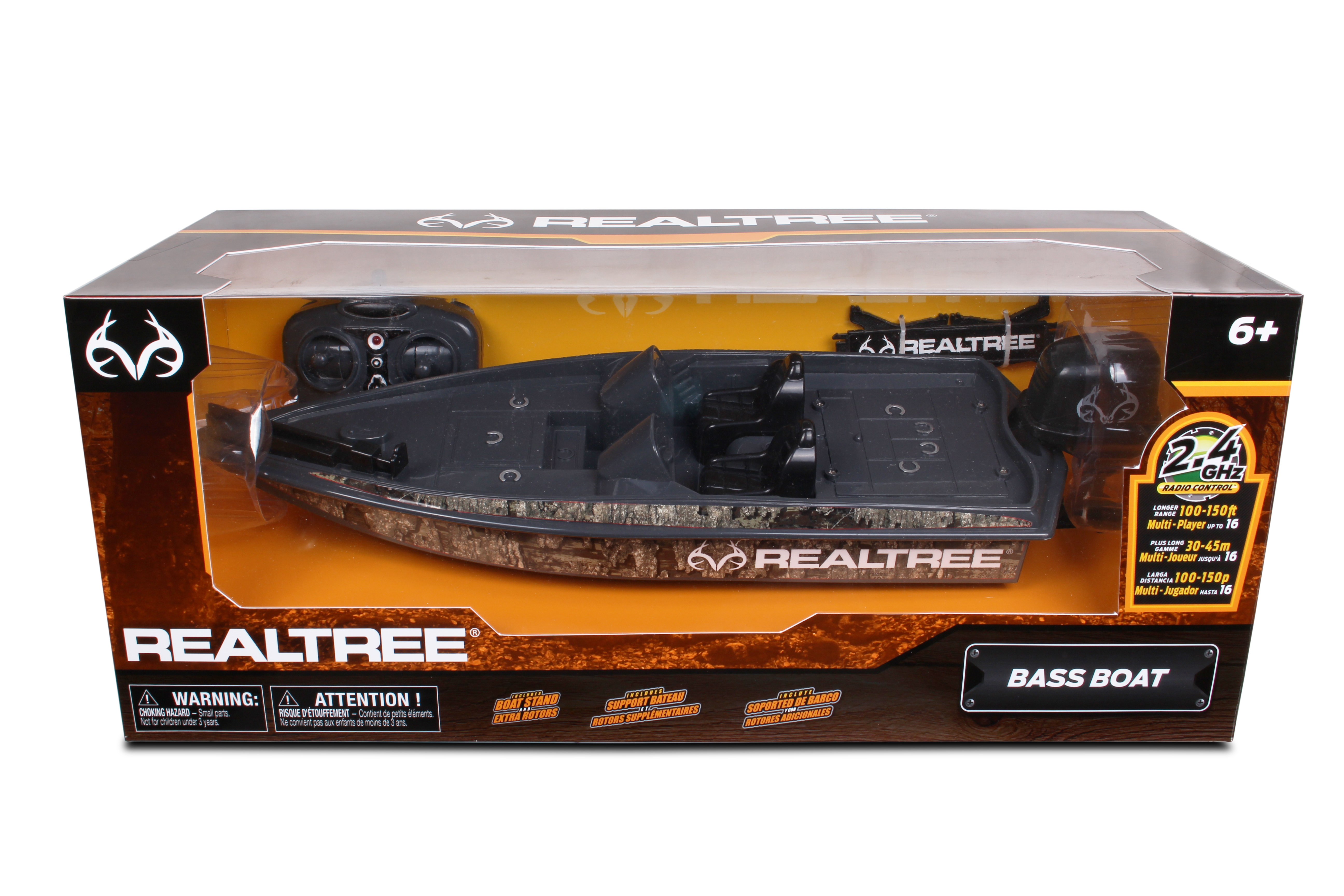 Radio Control boat with the popular Real Tree License. 2.4 ghz frequency for a range of 100 - 150 feet.