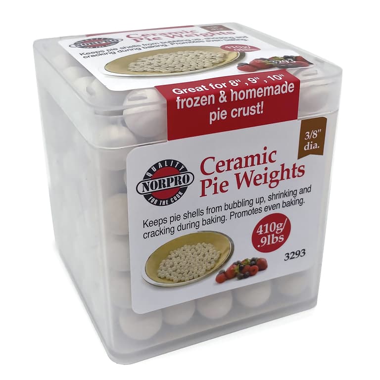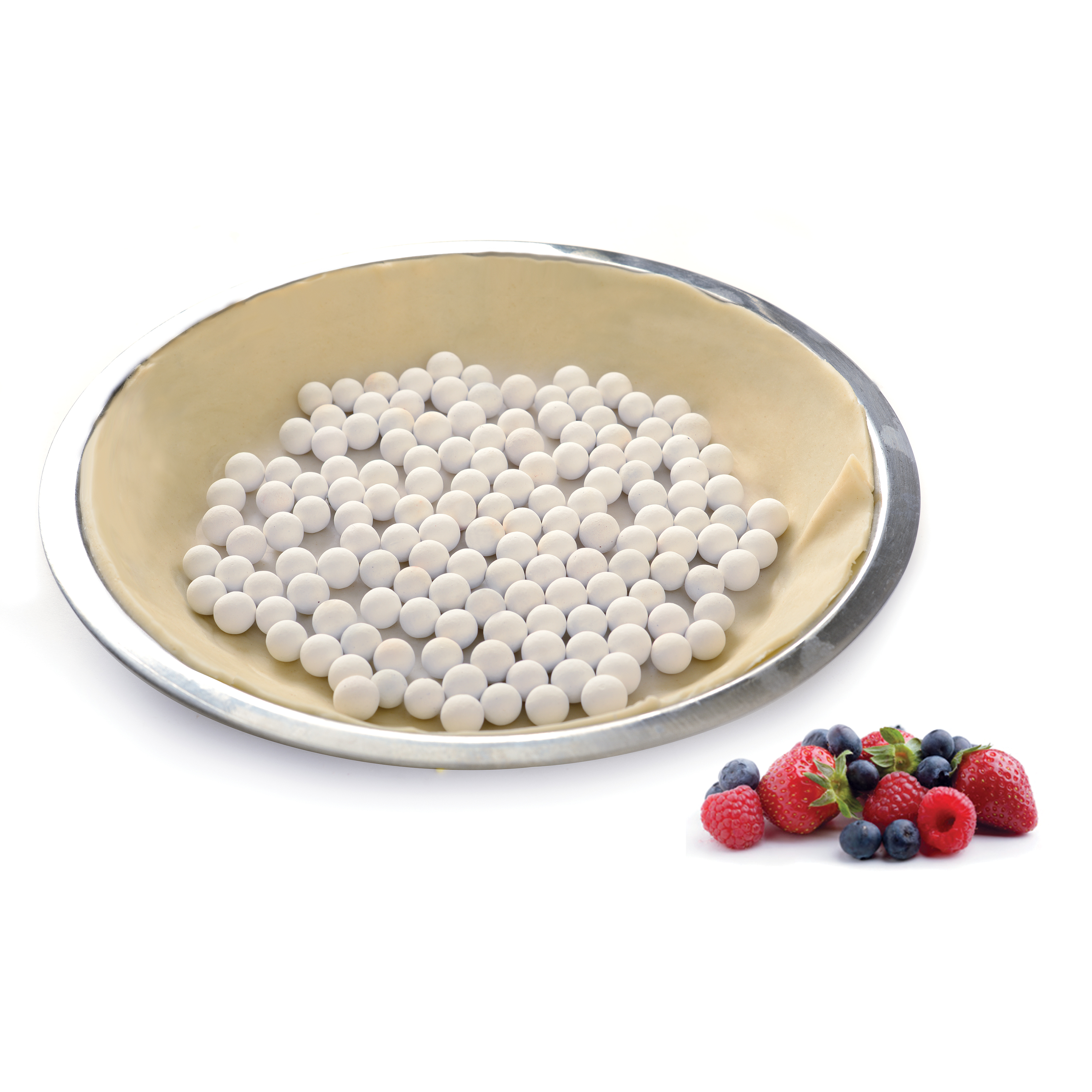 This packet of ceramic pie weights contains plenty of ceramic beads to cover the bottom of an unfilled pie crust, preventing the shrinking that can occur while baking. To use, press the crust in the pan, prick with a fork, line with foil or wax paper and fill the pan with the weights. Bake according to the recipe, cool and remove the liner with the weights. Pour the weights into a coloander and let them continue to cool. Once cool simply wash and store for endless reuse.Specifications