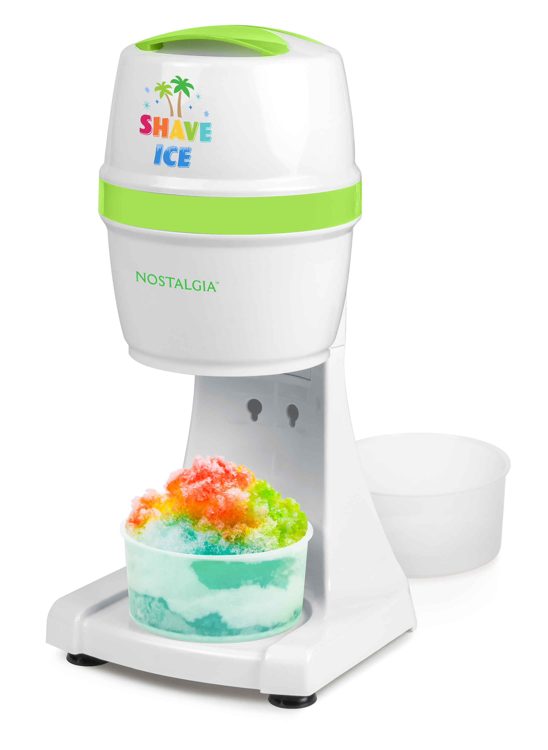 Create refreshing shave ice, snow cones, slush drinks, margaritas, daiquiris and more with the Nostalgia Shave Ice and Snow Cone Maker. It features a stainless steel cutting blade that quickly shaves ice cubes into fluffy, snow-like ice. Use the included snow cone cup holder to keep your snow cone cup secure, or remove it to fill a serving bowl to make a number of snow and slush-style drinks.Specifications