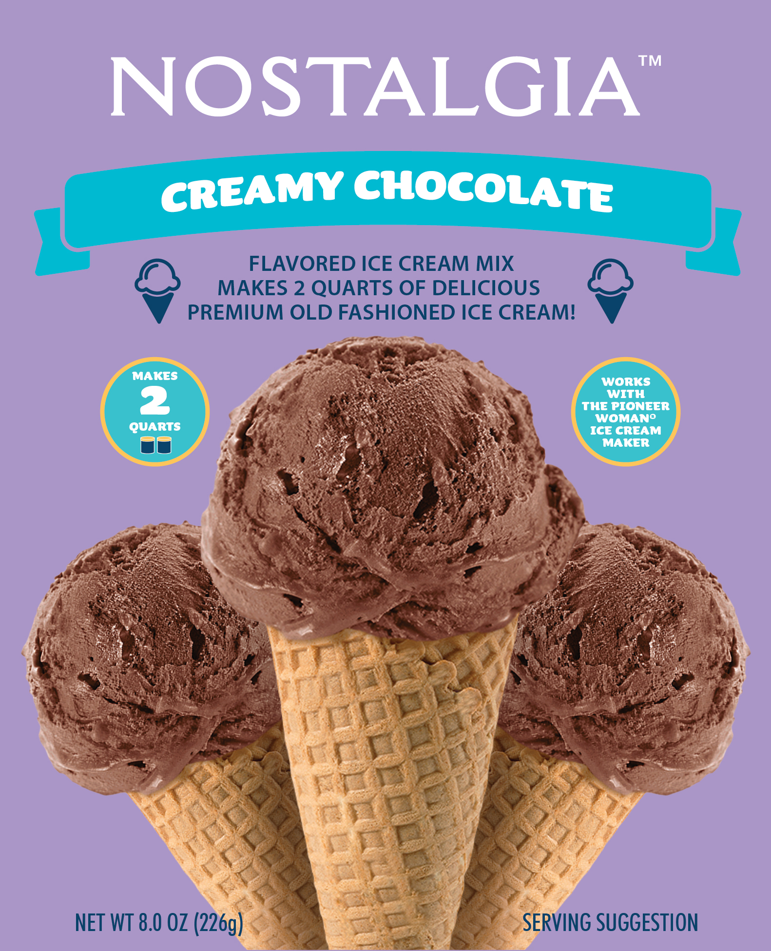 2-quart packets; Just add mix to milk and heavy cream; Make homemade ice cream the centerpiece of any party; Mix is perfect for use with any Nostalgia ice cream maker